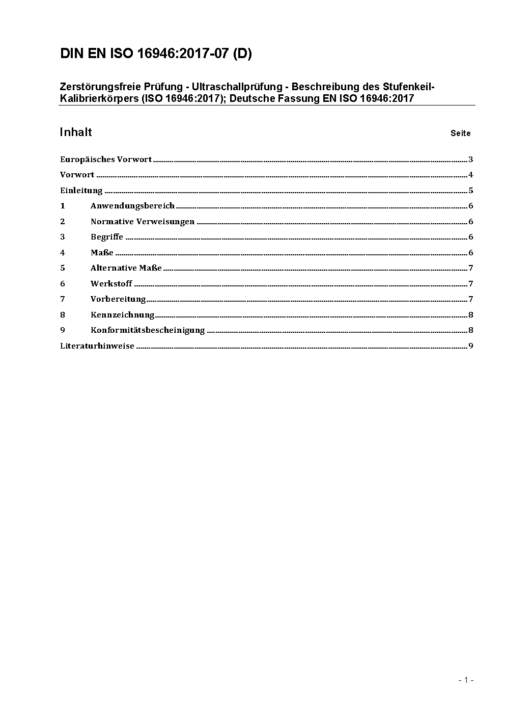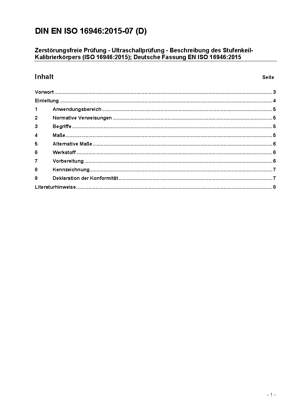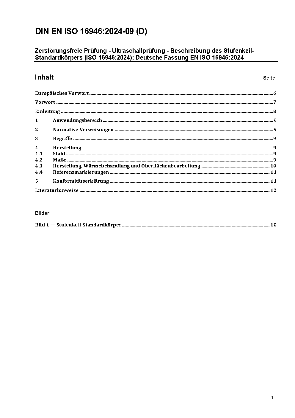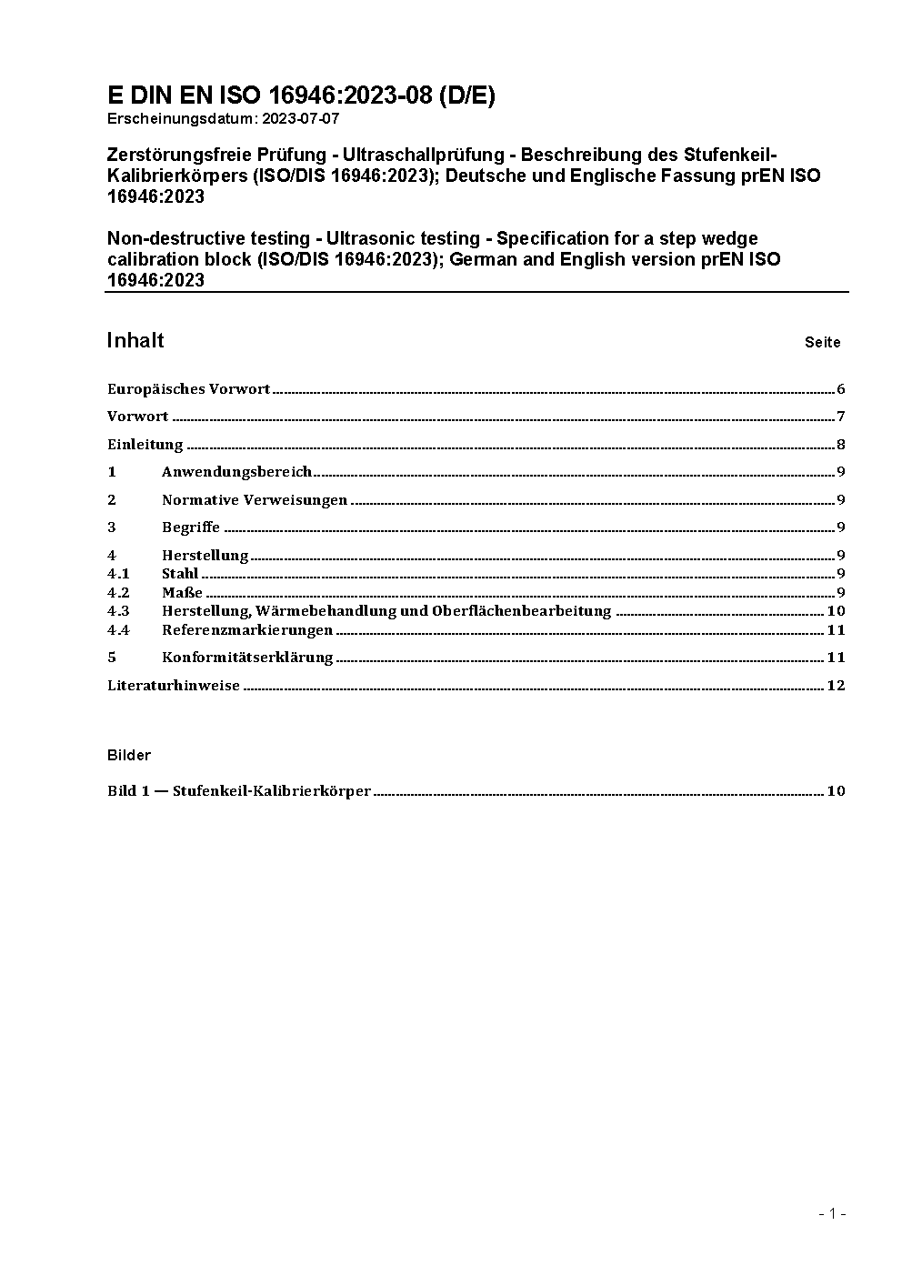 Non-destructive testing - Ultrasonic testing - Specification for a step wedge calibration block (ISO/DIS 16946:2023); German and English version prEN ISO 16946:2023