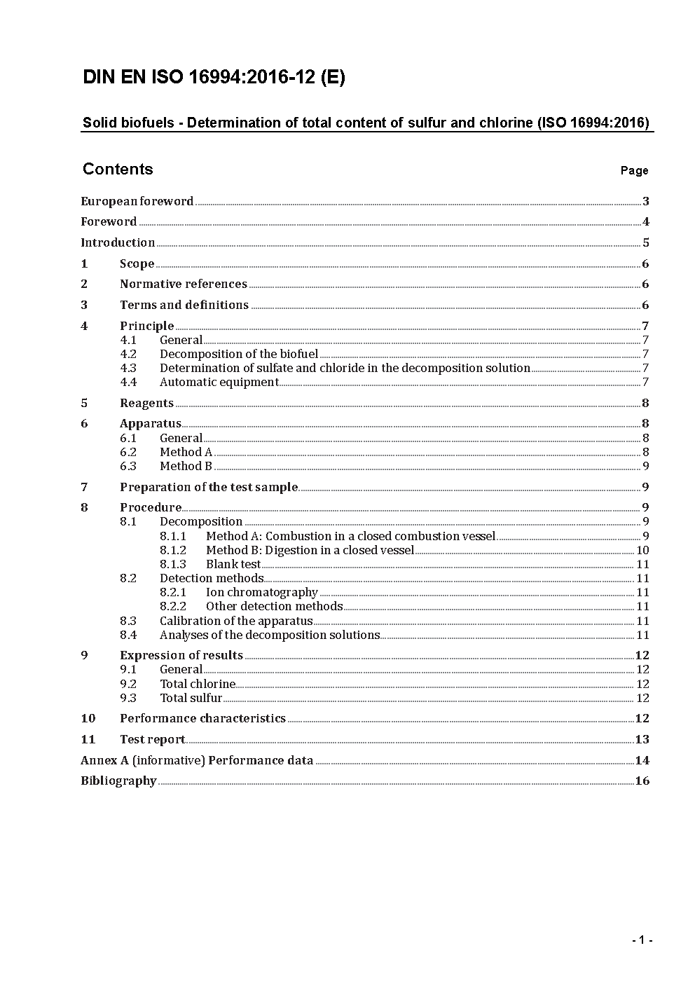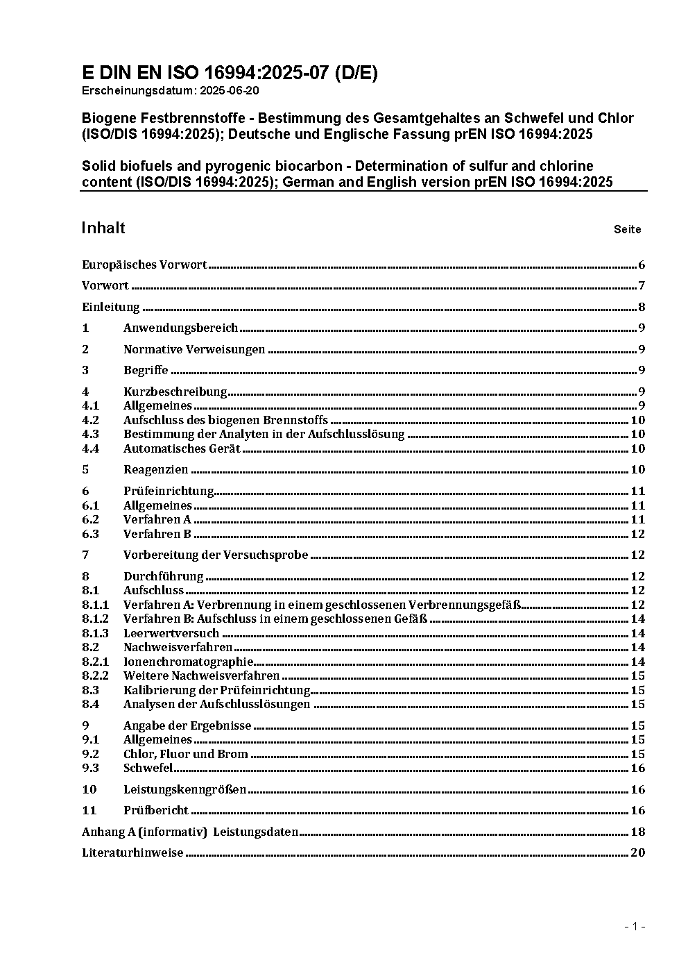 Solid biofuels and pyrogenic biocarbon - Determination of sulfur and chlorine content (ISO/DIS 16994:2025); German and English version prEN ISO 16994:2025