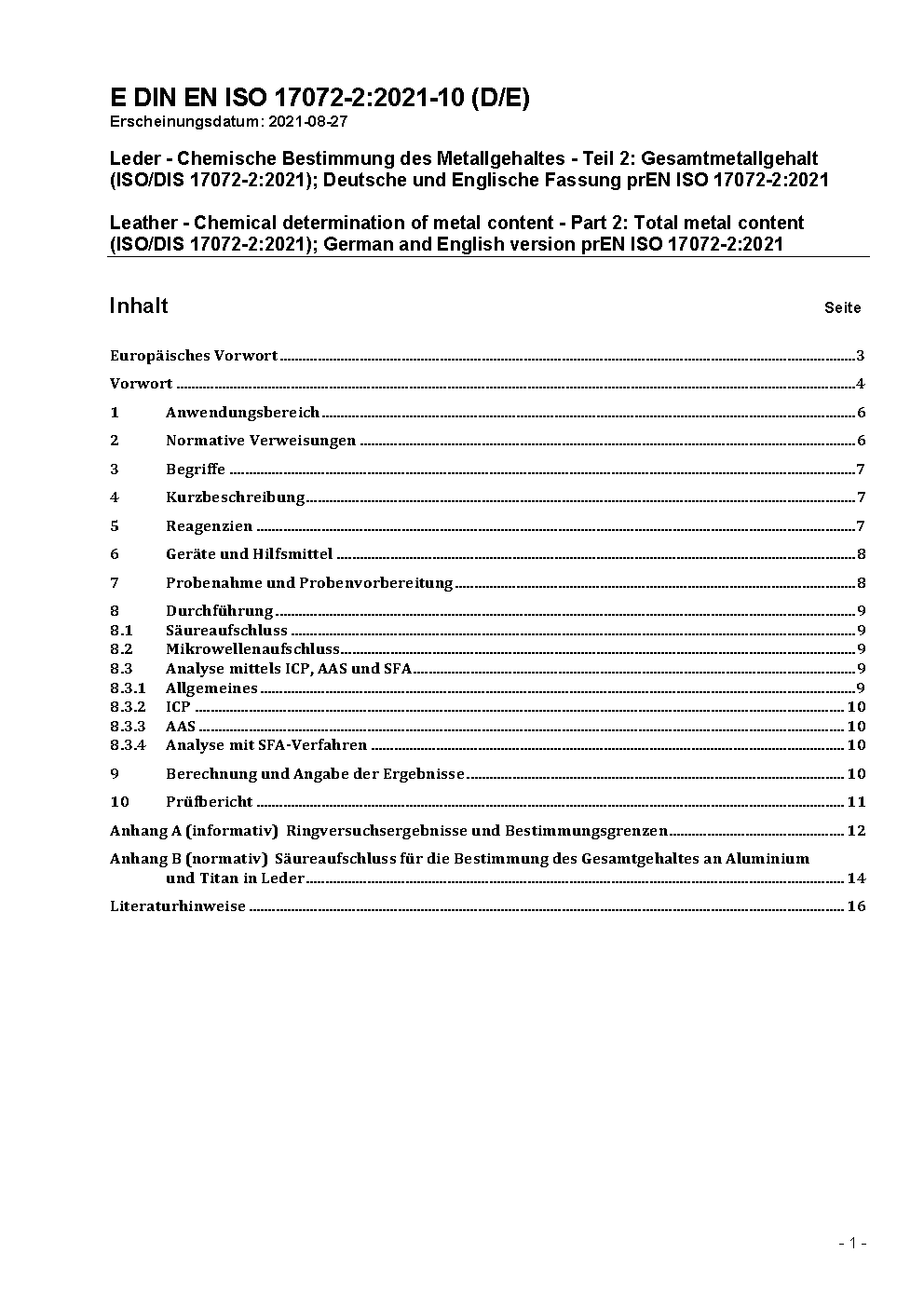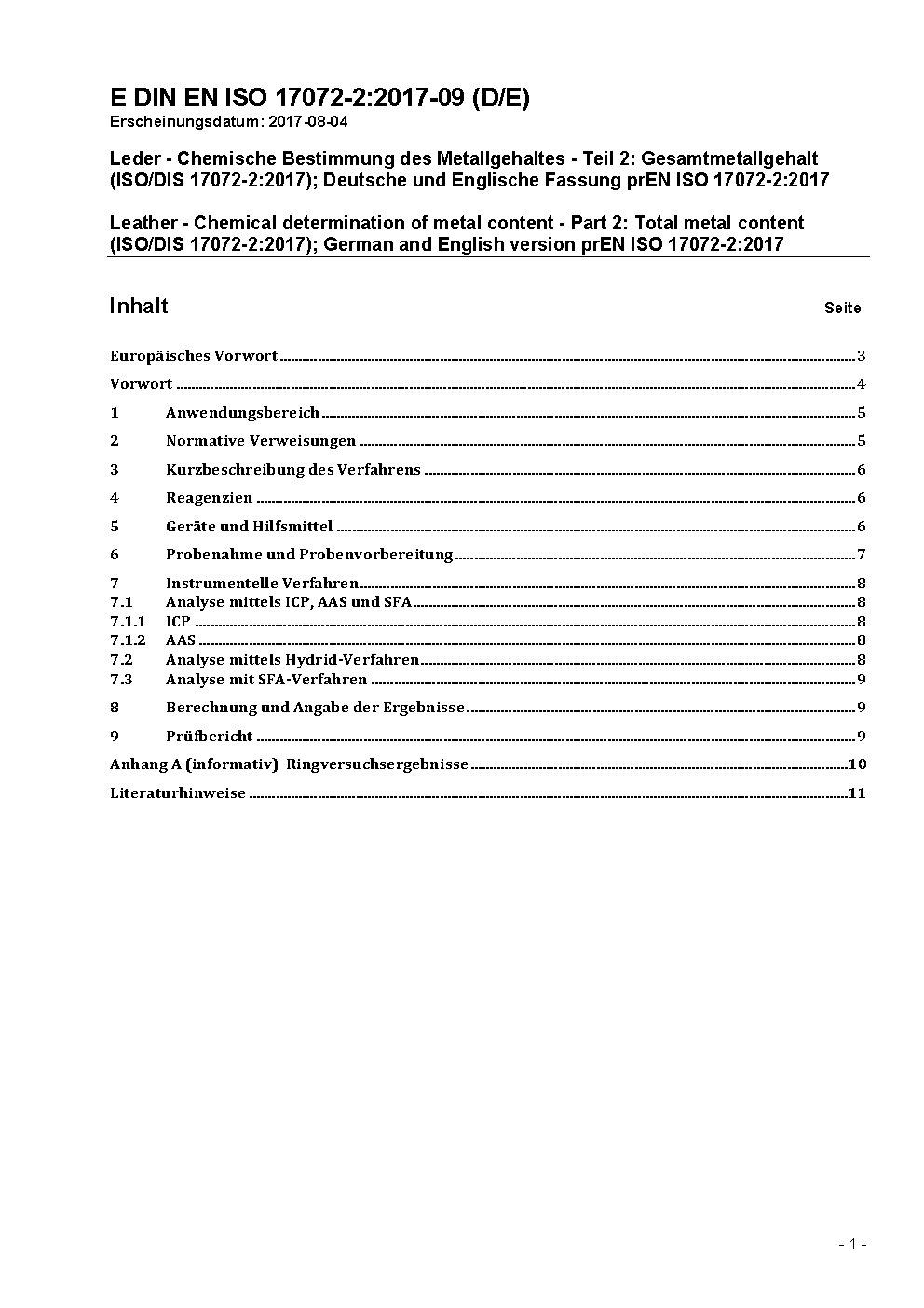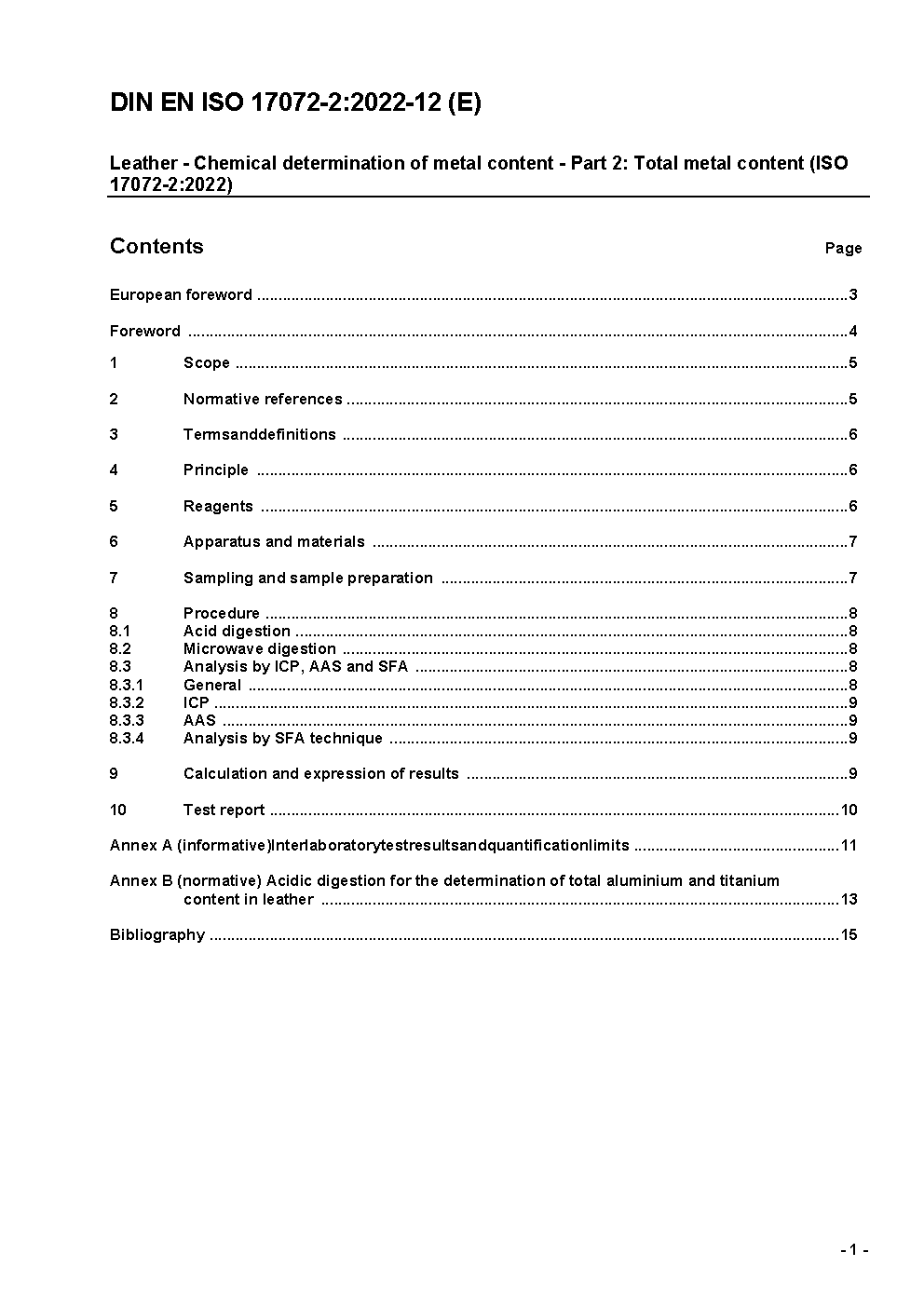 Leather - Chemical determination of metal content - Part 2: Total metal content (ISO 17072-2:2011); German version EN ISO 17072-2:2011