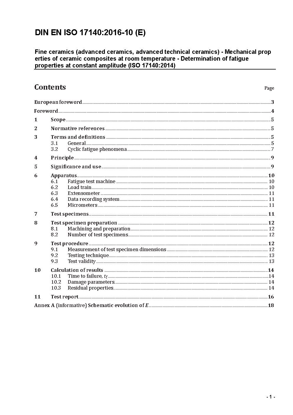 Fine ceramics (advanced ceramics, advanced technical ceramics) - Mechanical properties of ceramic composites at room temperature - Determination of fatigue properties at constant amplitude (ISO 17140:2014); German version EN ISO 17140:2016