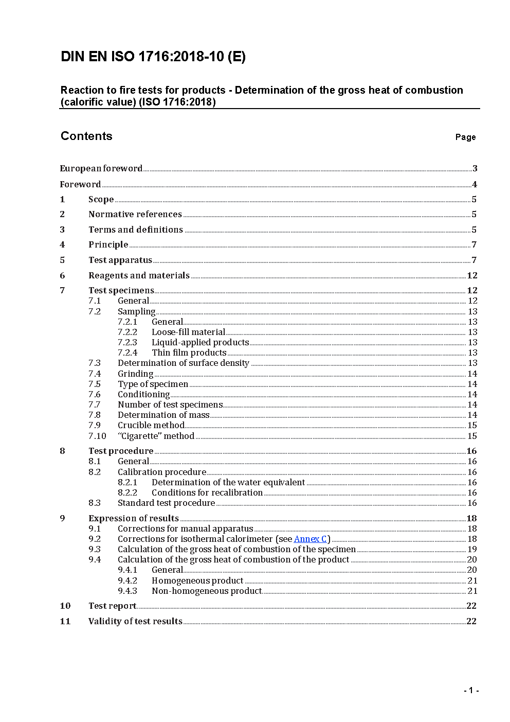 Reaction to fire tests for products - Determination of the gross heat of combustion (calorific value) (ISO/DIS 1716:2017); German and English version prEN ISO 1716:2017