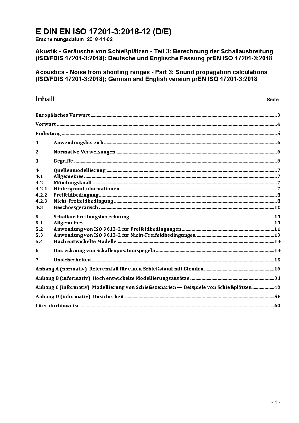 Acoustics - Noise from shooting ranges - Part 3: Sound propagation calculations (ISO/FDIS 17201-3:2018); German and English version prEN ISO 17201-3:2018