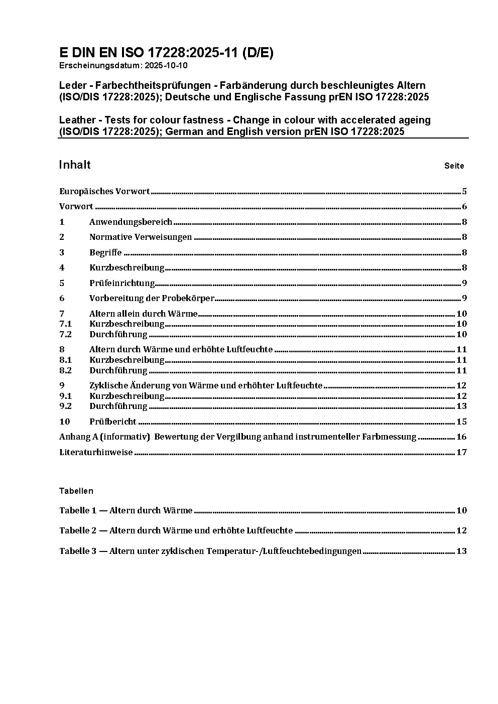 Prévu pour remplacer DIN EN ISO 17228 (2006-09).