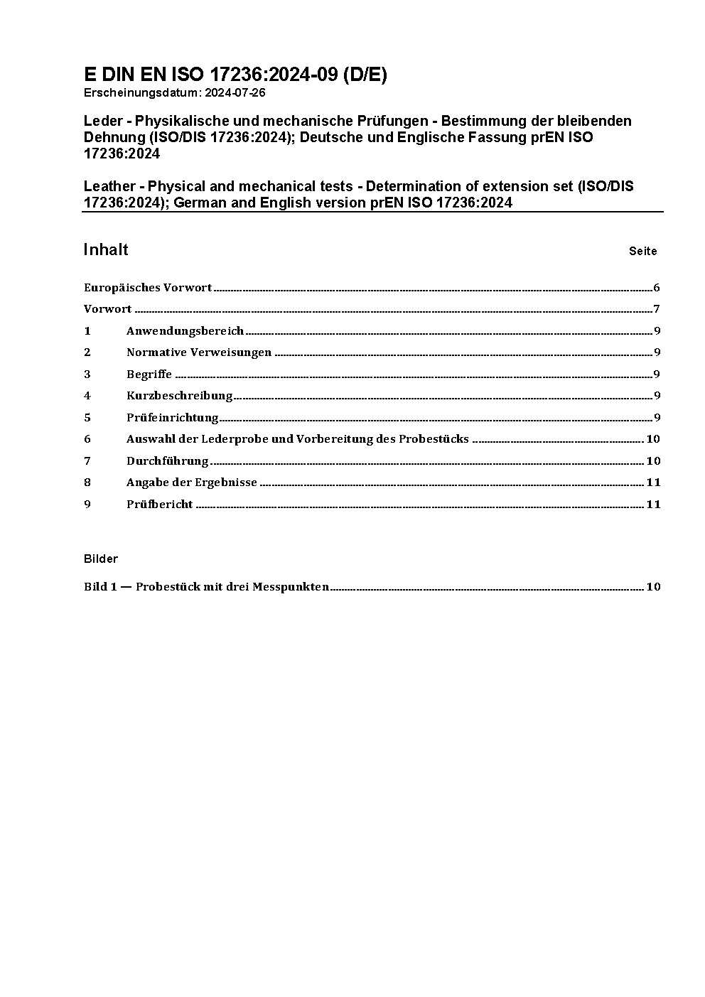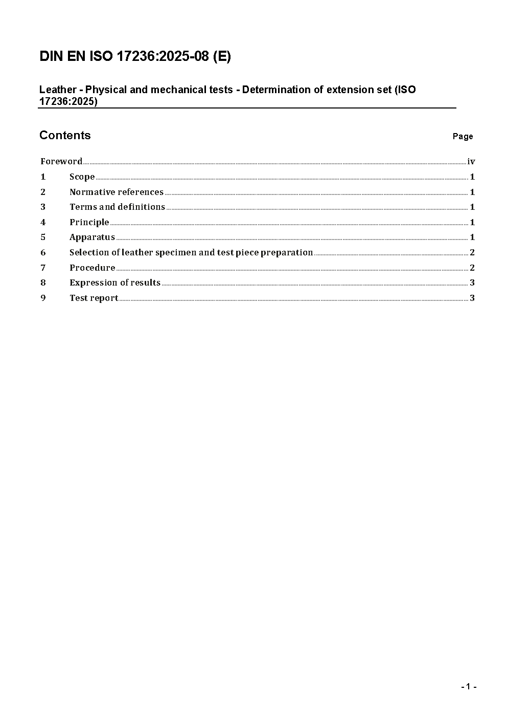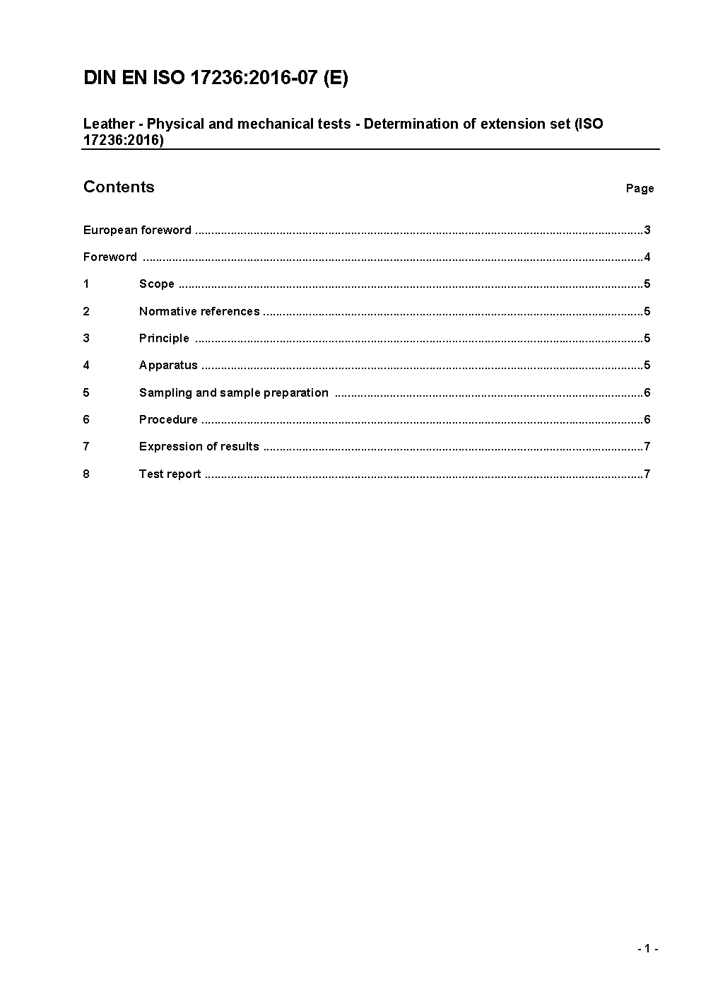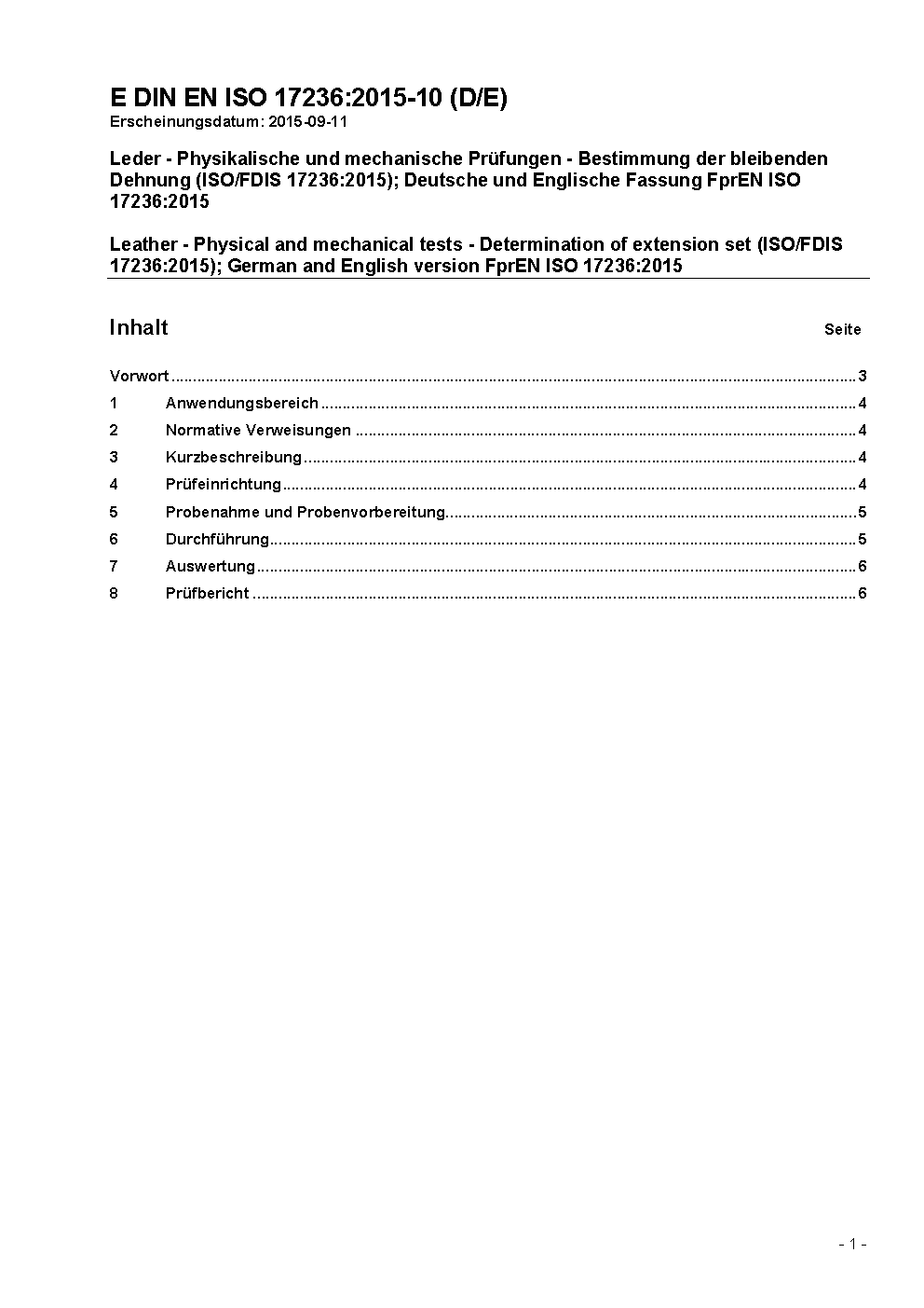 Leather - Physical and mechanical tests - Determination of extension set (ISO 17236:2002); German version EN ISO 17236:2002