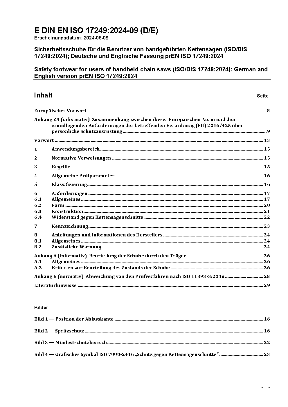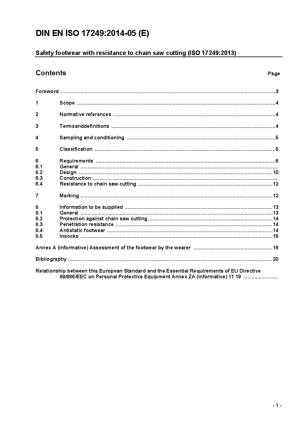 Safety footwear with resistance to chain saw cutting (ISO 17249:2004 + Amd. 1:2007); German version EN ISO 17249:2004 + A1:2007