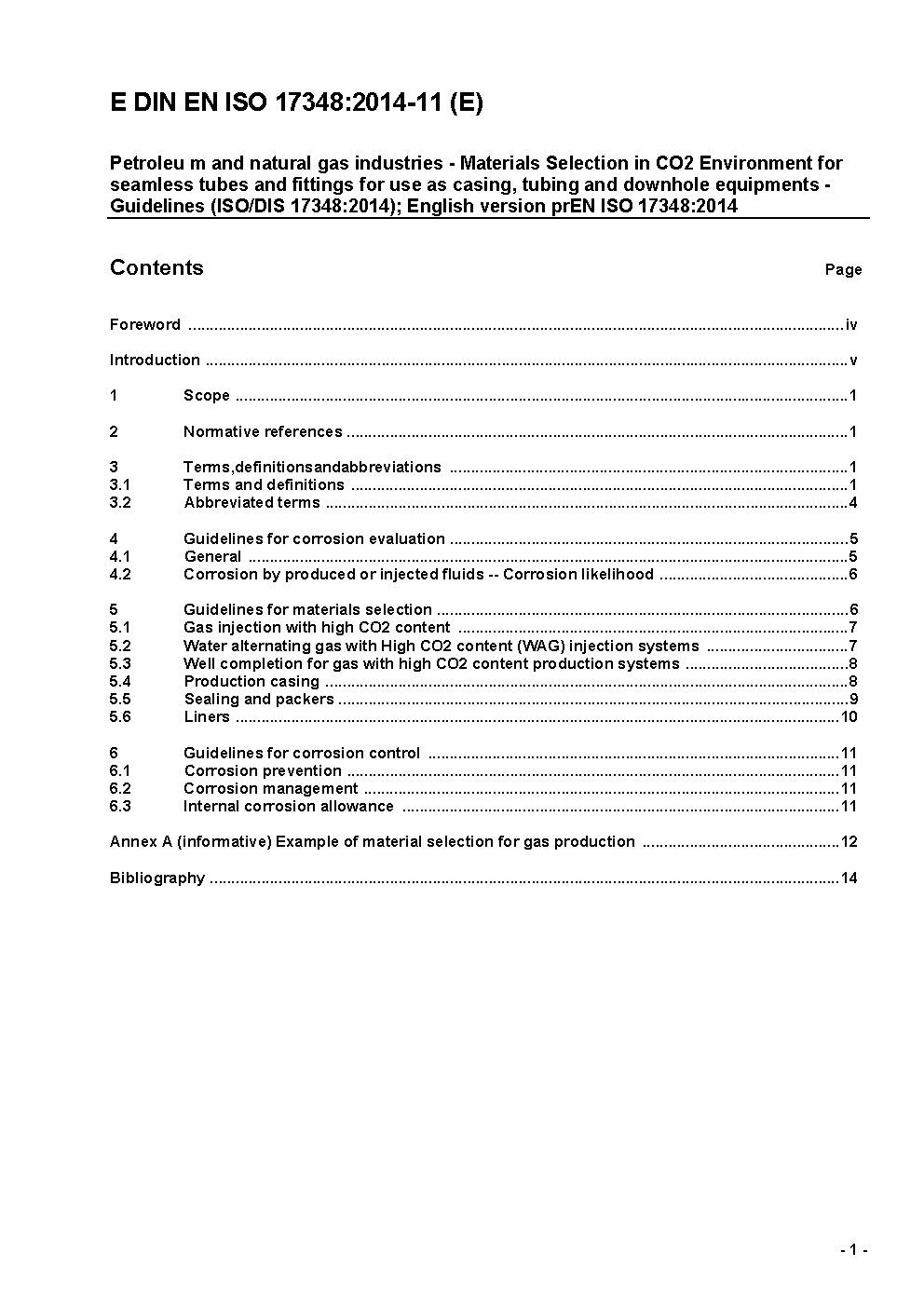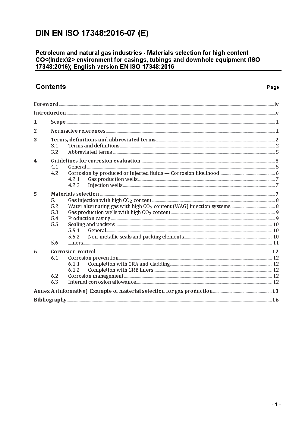 Erdöl- und Erdgasindustrie - Werkstoffauswahl für Futterrohre, Steigrohre und Bohrloch-Ausrüstungen in Umgebungen mit hohem CO<(Index)2>-Gehalt (ISO 17348:2016); Englische Fassung EN ISO 17348:2016