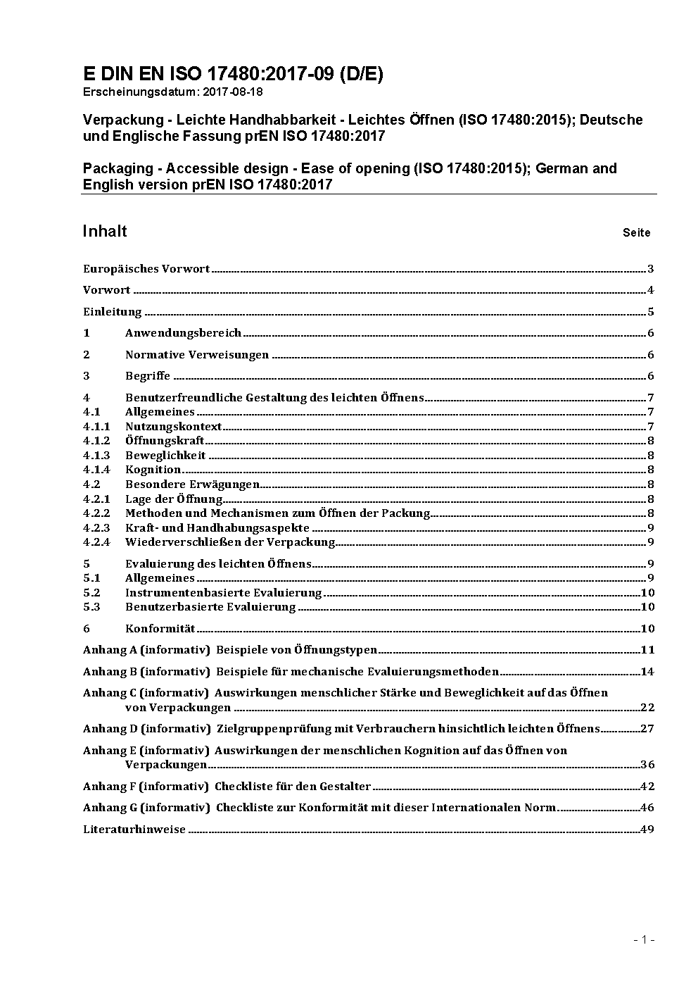 Verpackung - Leichte Handhabbarkeit - Leichtes Öffnen (ISO 17480:2015); Deutsche und Englische Fassung prEN ISO 17480:2017