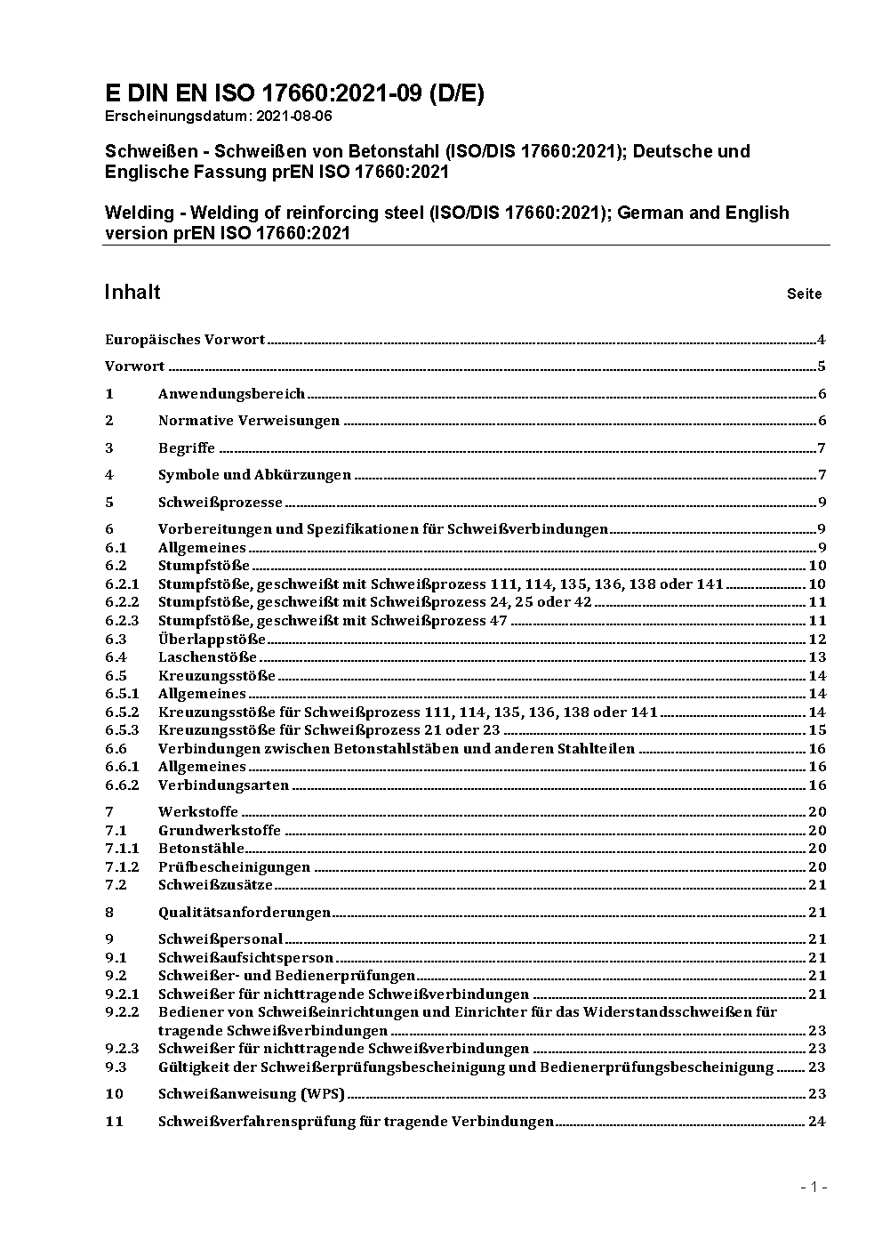 Schweißen - Schweißen von Betonstahl (ISO/DIS 17660:2003); Deutsche Fassung prEN ISO 17660:2003