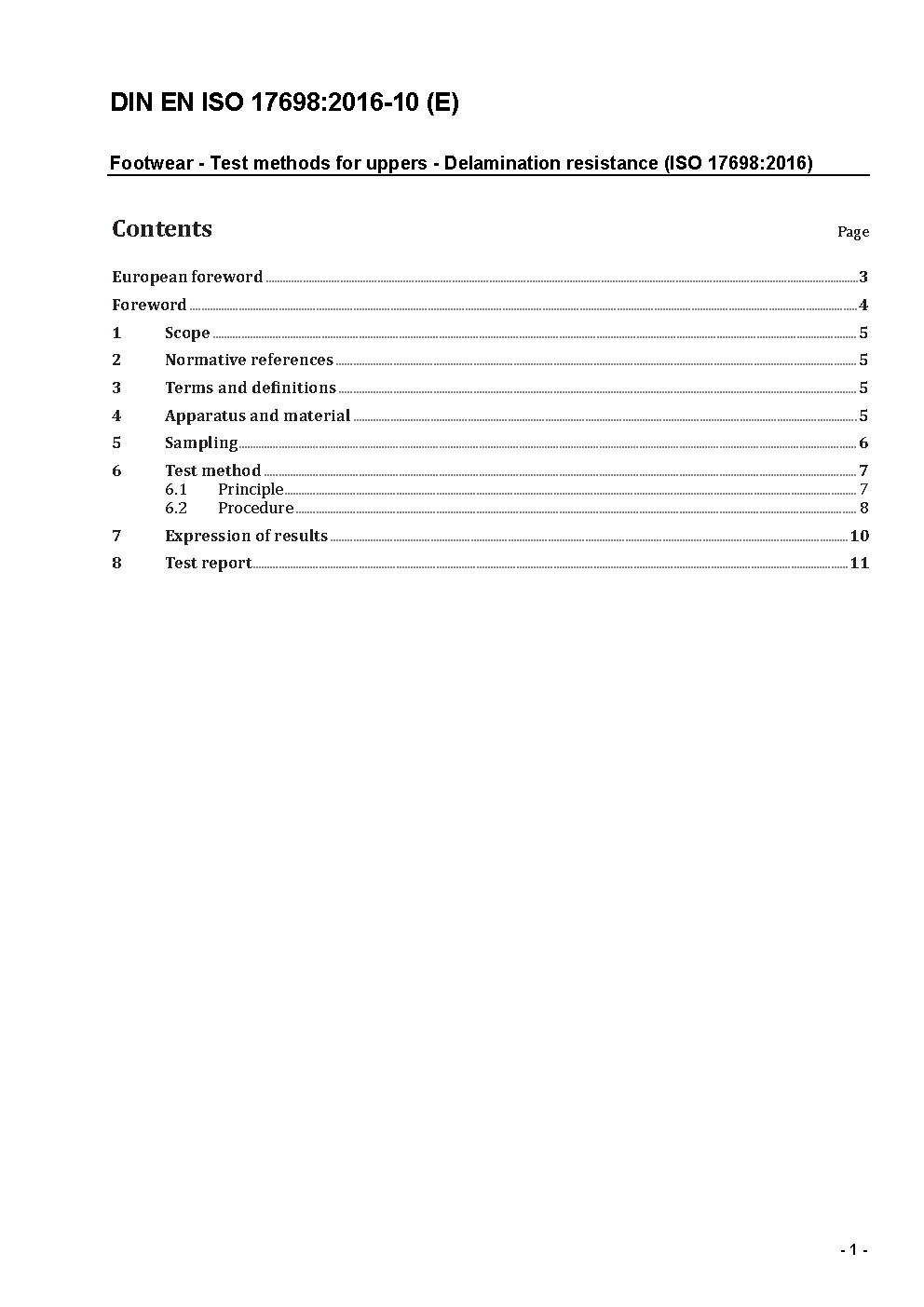 Footwear - Test methods for uppers - Delamination resistance (ISO 17698:2016); German version EN ISO 17698:2016