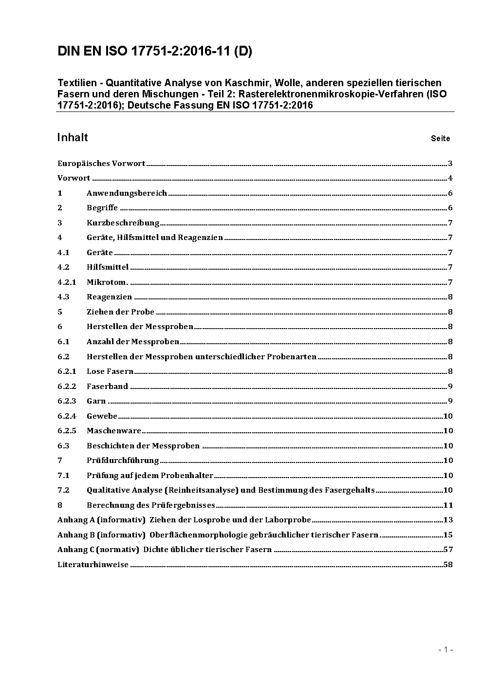 Textiles - Quantitative analysis of cashmere, wool, other speciality animal fibres and their blends - Part 2: Scanning Electron Microscopy method (ISO/DIS 17751-2:2014); German version prEN ISO 17751-2:2014