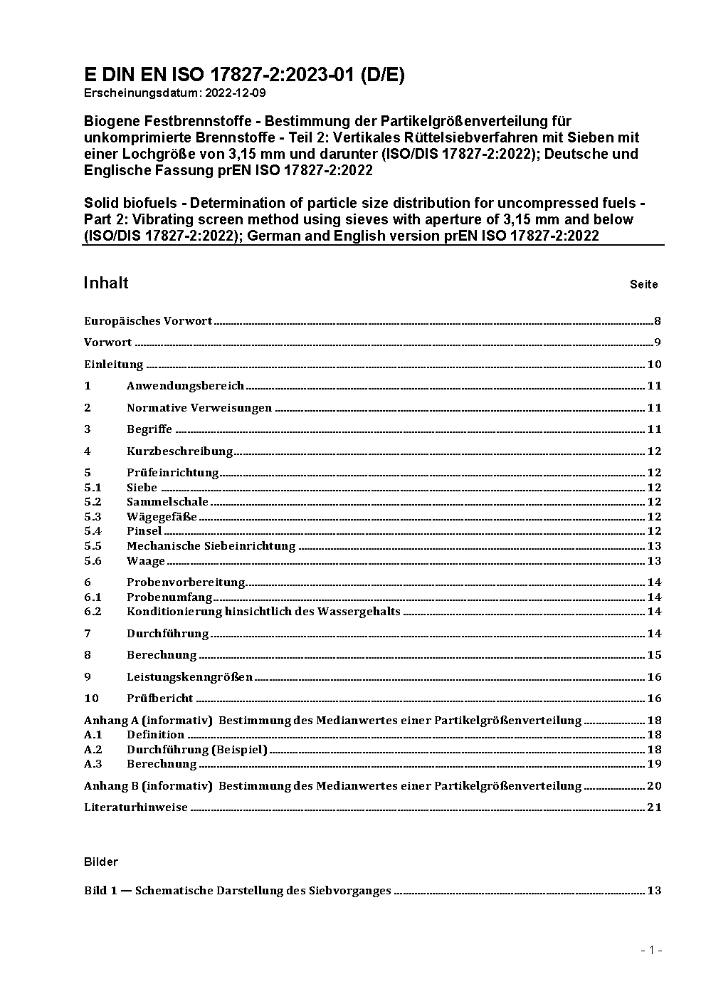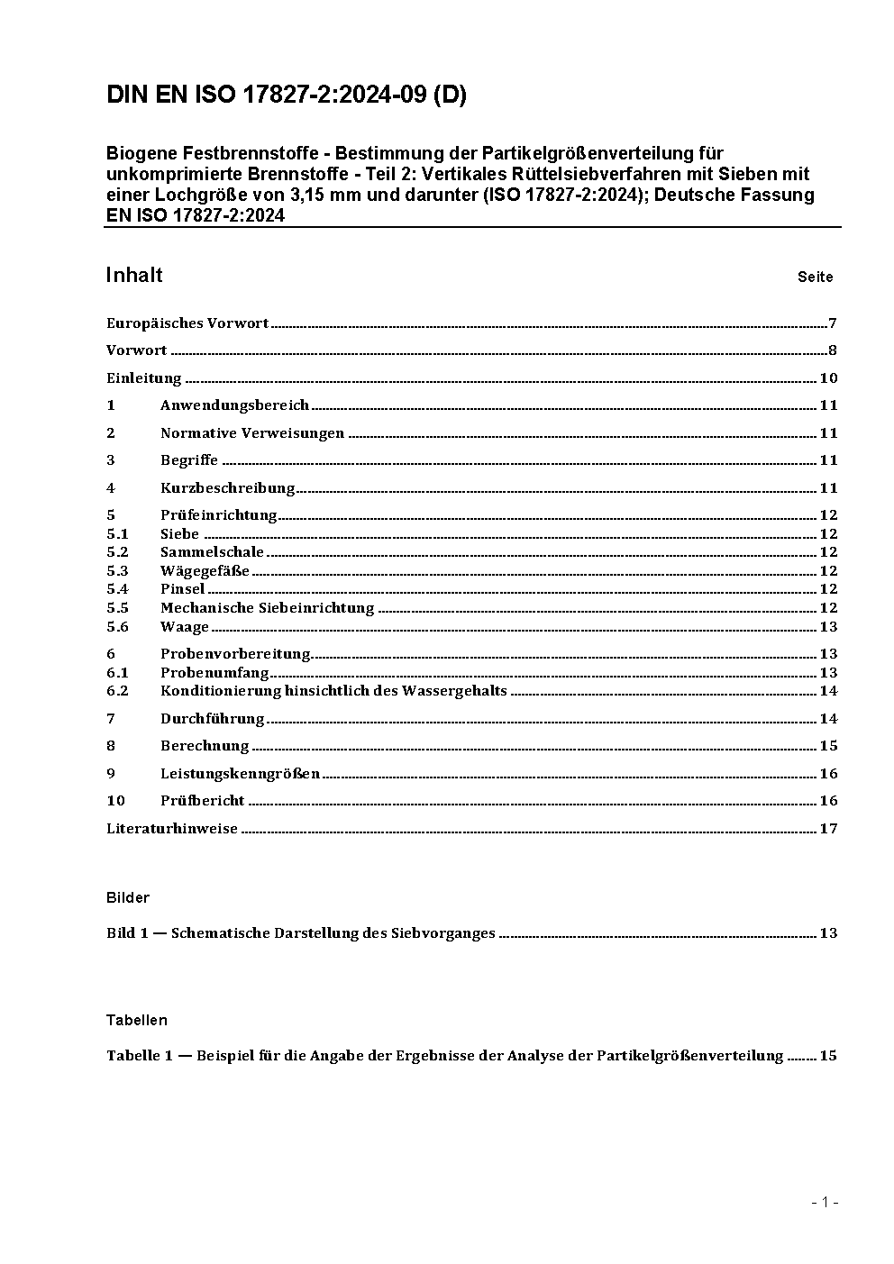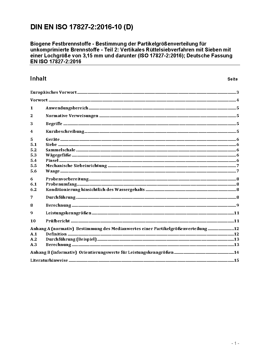 Biogene Festbrennstoffe - Bestimmung der Partikelgrößenverteilung für unkomprimierte Brennstoffe - Teil 2: Vertikales Rüttelsiebverfahren mit Sieben mit einer Lochgröße von 3,15 mm und darunter (ISO 17827-2:2016); Deutsche Fassung EN ISO 17827-2:2016