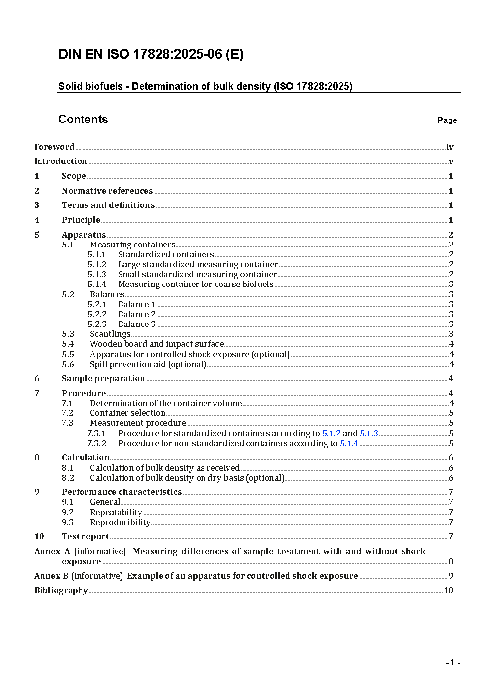 Solid biofuels - Determination of bulk density (ISO 17828:2025); German version EN ISO 17828:2025