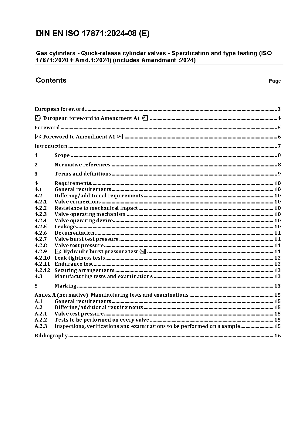 Gas cylinders - Quick-release cylinder valves - Specification and type testing - AMENDMENT 1 (ISO 17871:2020/DAM 1:2023); German and English version EN ISO 17871:2020/prA1:2023