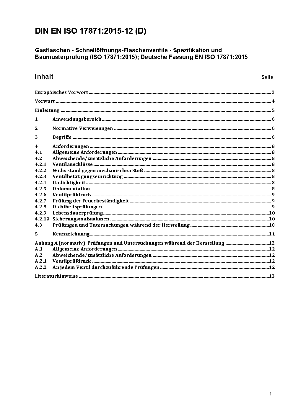 Gasflaschen - Schnellöffnungs-Flaschenventile - Spezifikation und Baumusterprüfung - ÄNDERUNG 1 (ISO 17871:2020/DAM 1:2023); Deutsche und Englische Fassung EN ISO 17871:2020/prA1:2023