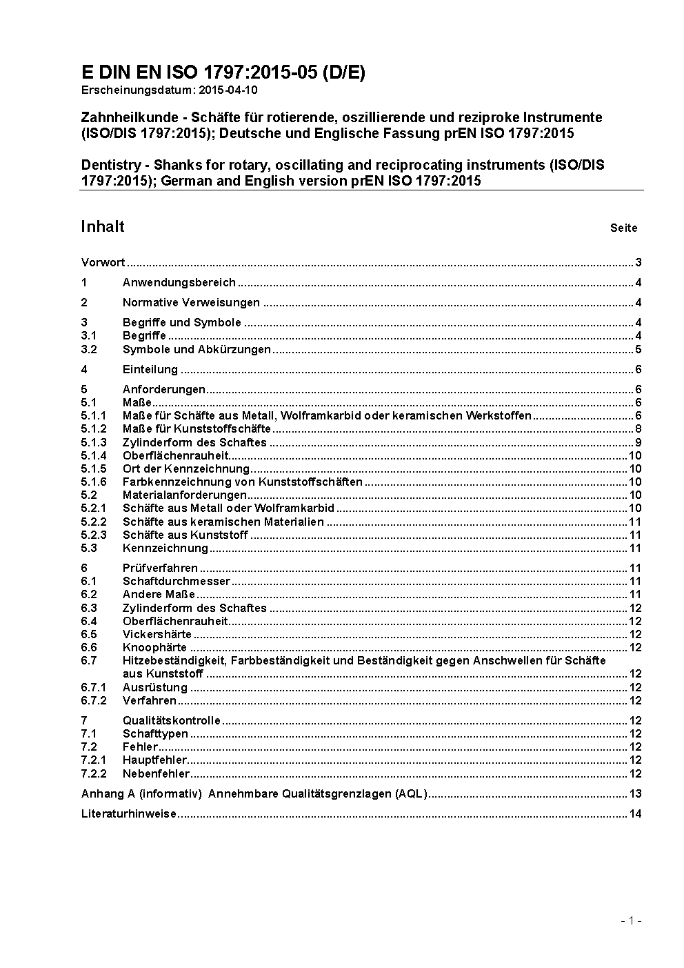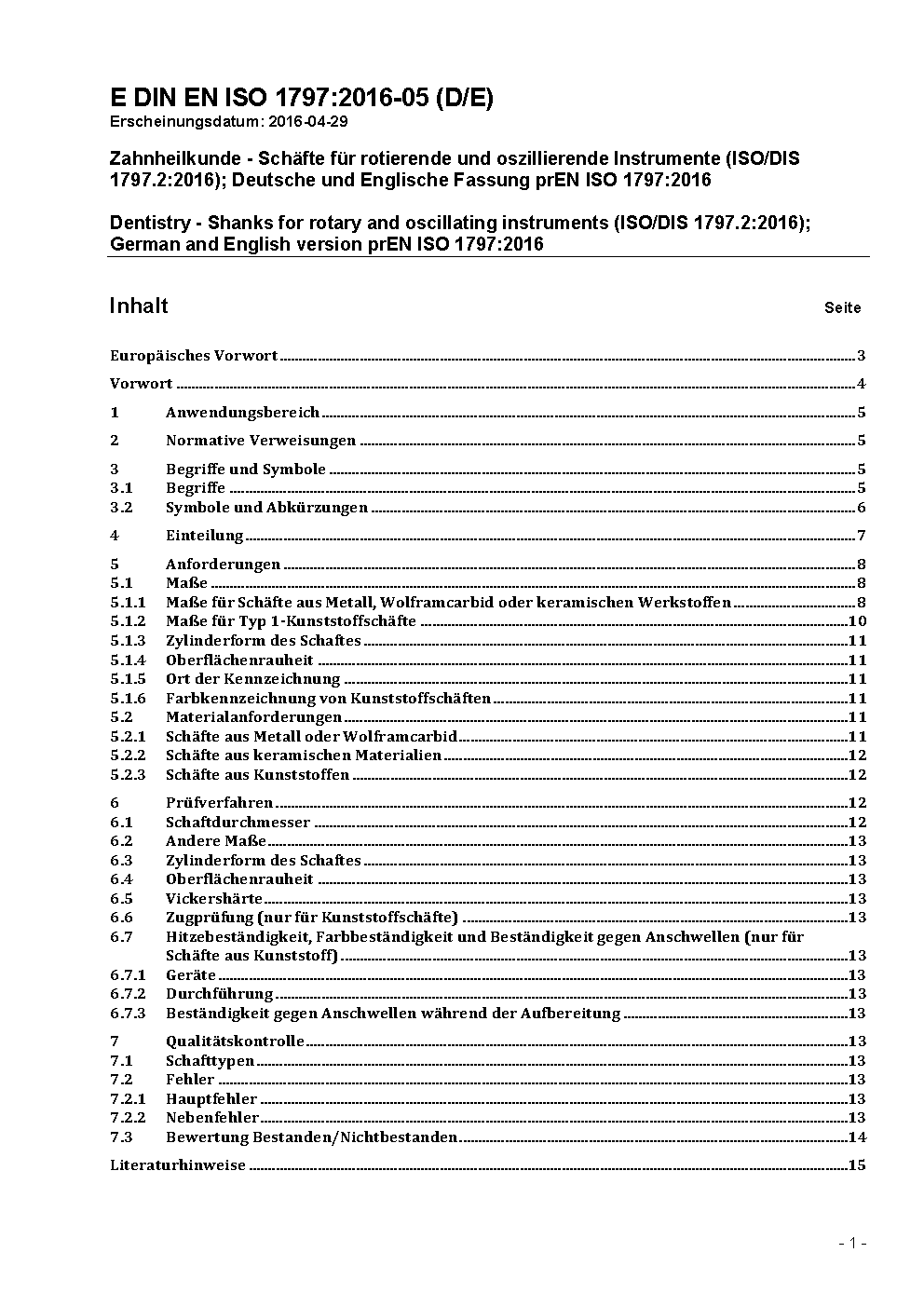 Dentistry - Shanks for rotary and oscillating instruments (ISO 1797:2017); German version EN ISO 1797:2017