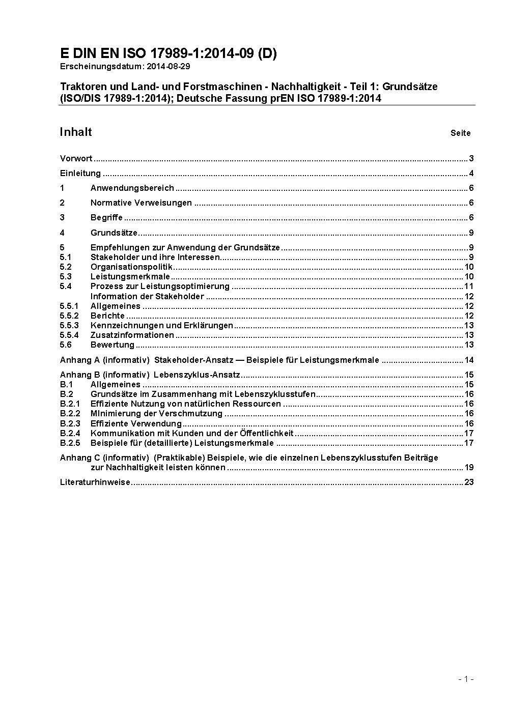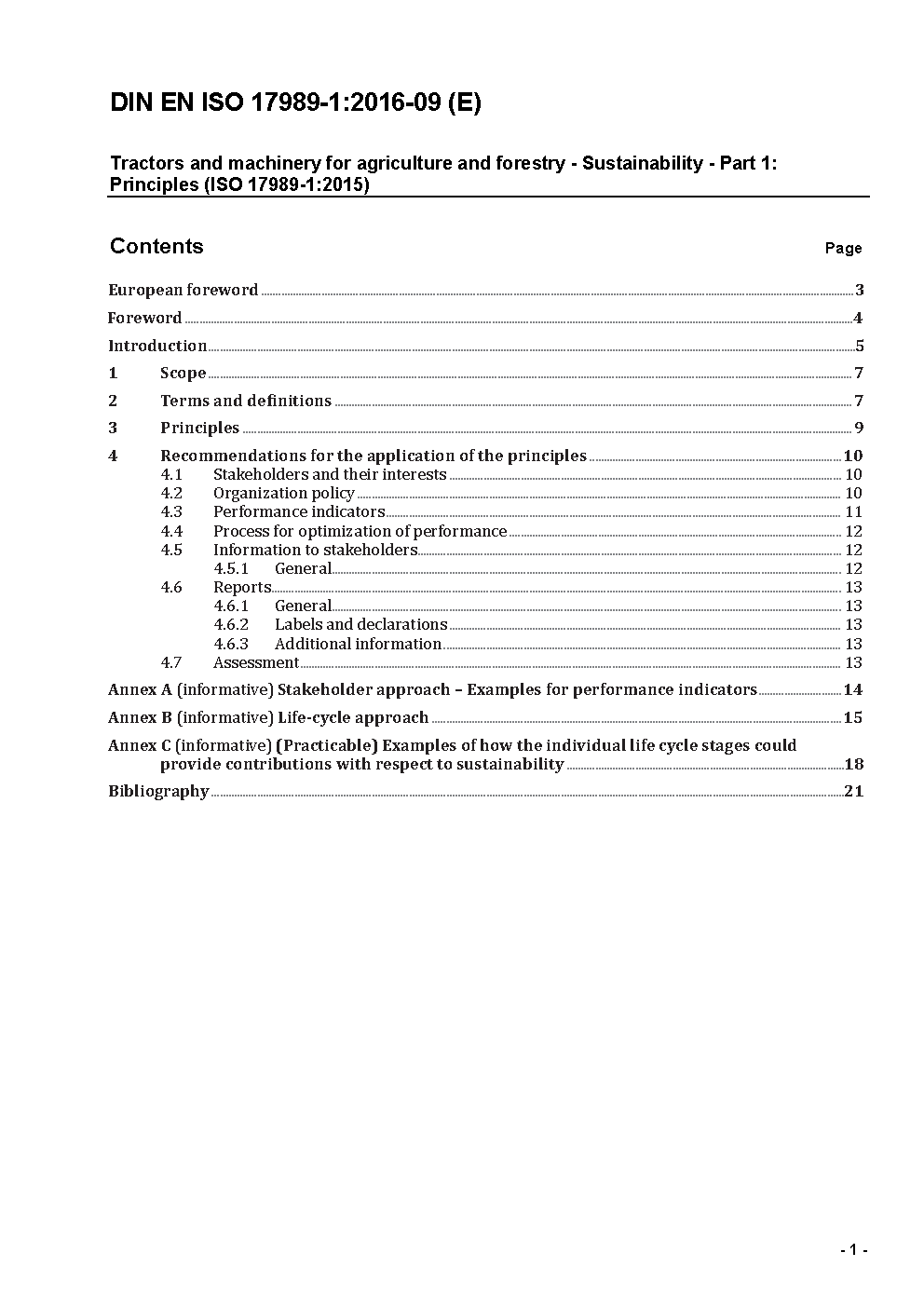 Traktoren und Land- und Forstmaschinen - Nachhaltigkeit - Teil 1: Grundsätze (ISO 17989-1:2015); Deutsche Fassung EN ISO 17989-1:2015