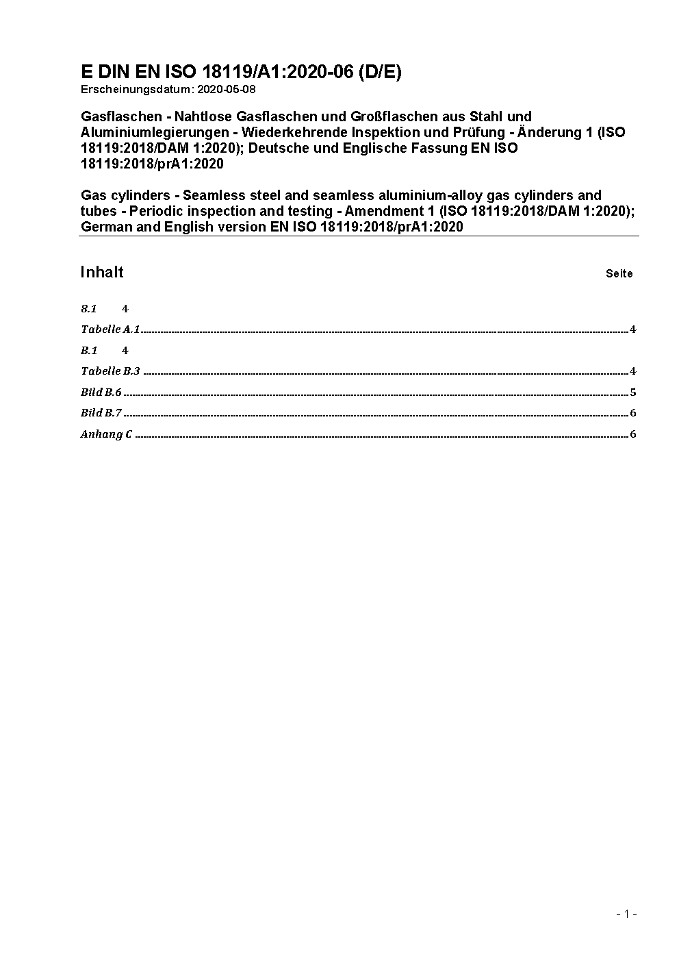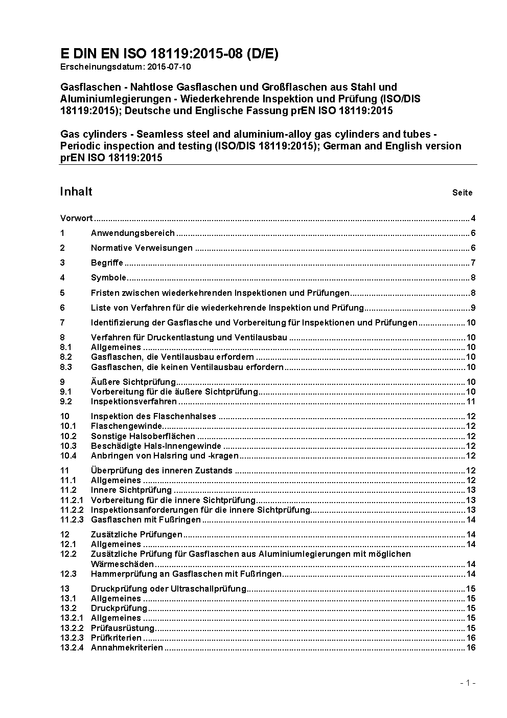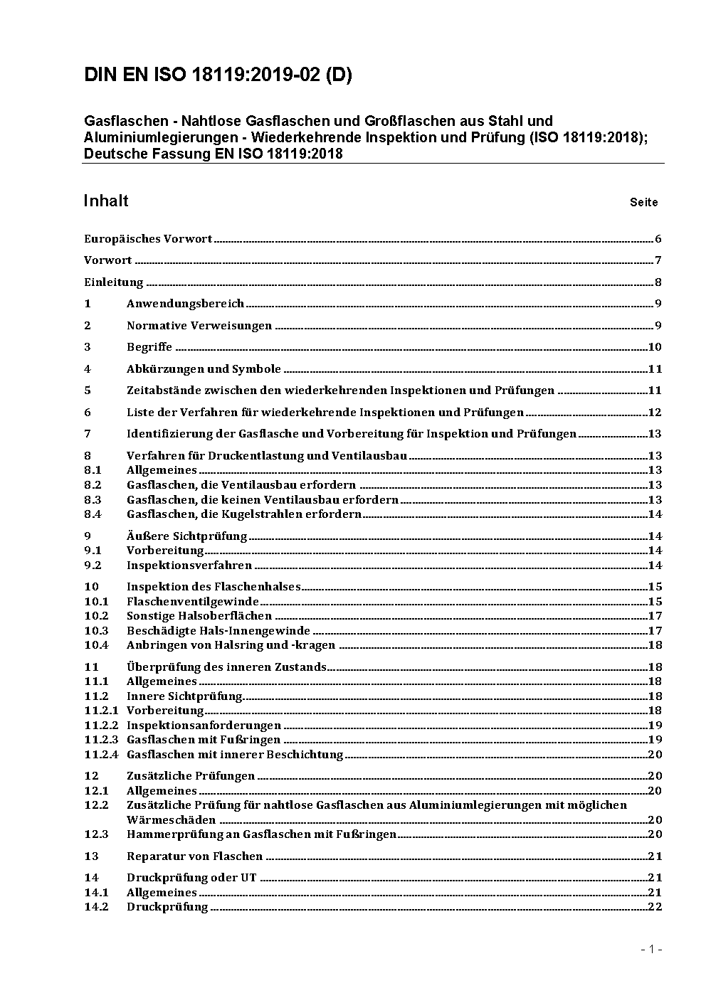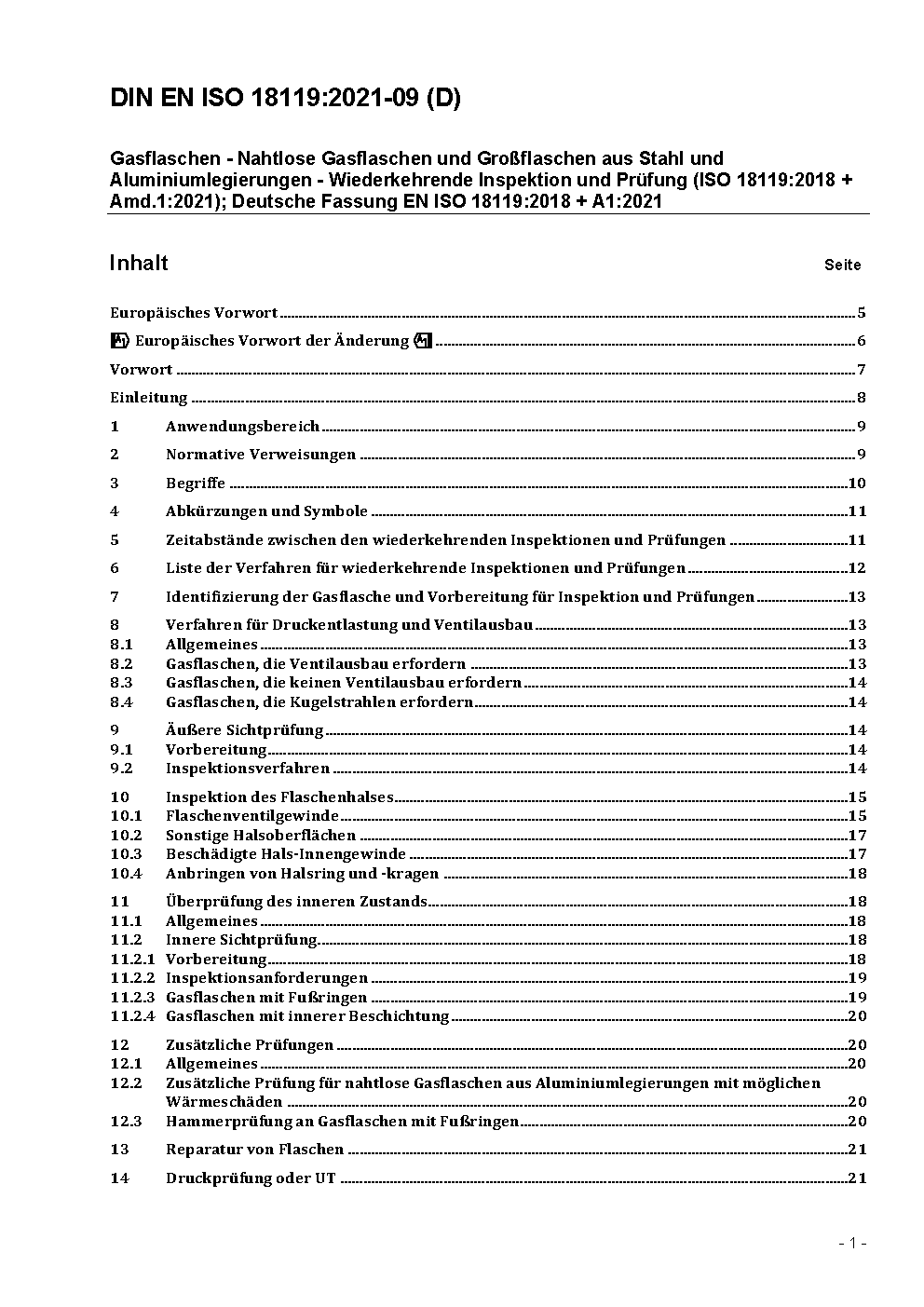 Gasflaschen - Nahtlose Gasflaschen und Großflaschen aus Stahl und Aluminiumlegierungen - Wiederkehrende Inspektion und Prüfung (ISO 18119:2018 + Amd 1:2021 + Amd 2:2024); Deutsche Fassung EN ISO 18119:2018 + A1:2021 + A2:2024