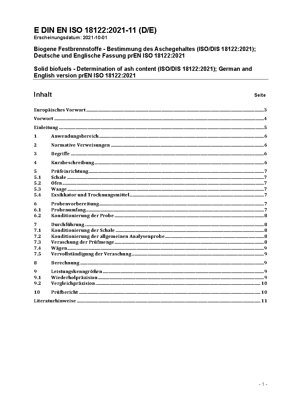 Solid biofuels - Determination of ash content (ISO/DIS 18122:2021); German and English version prEN ISO 18122:2021