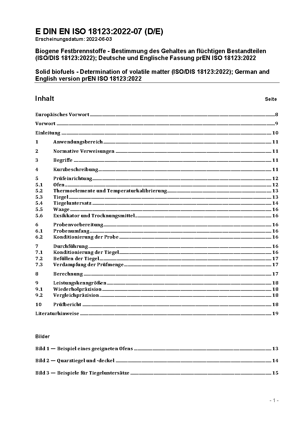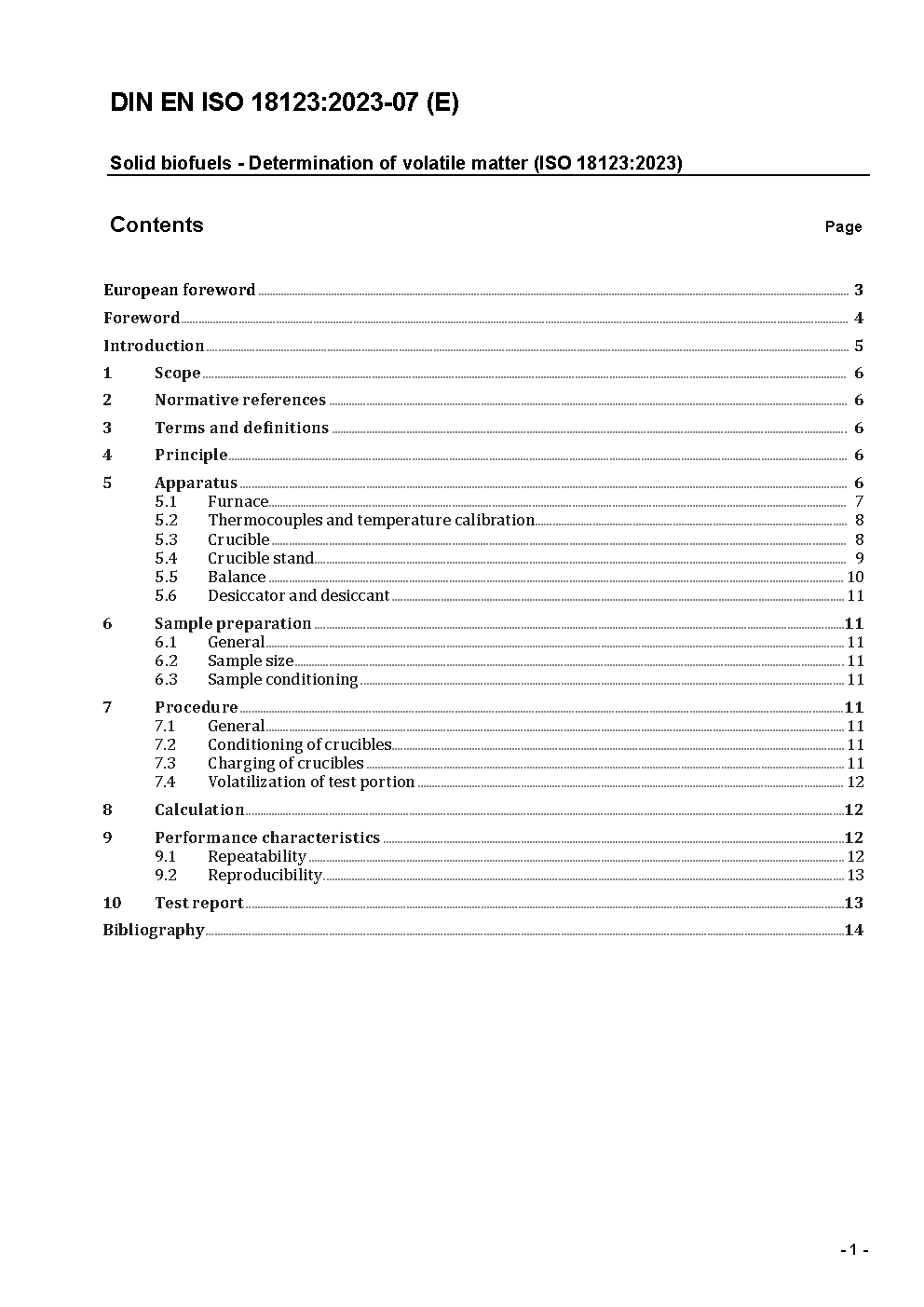 Solid biofuels - Determination of volatile matter (ISO 18123:2023); German version EN ISO 18123:2023
