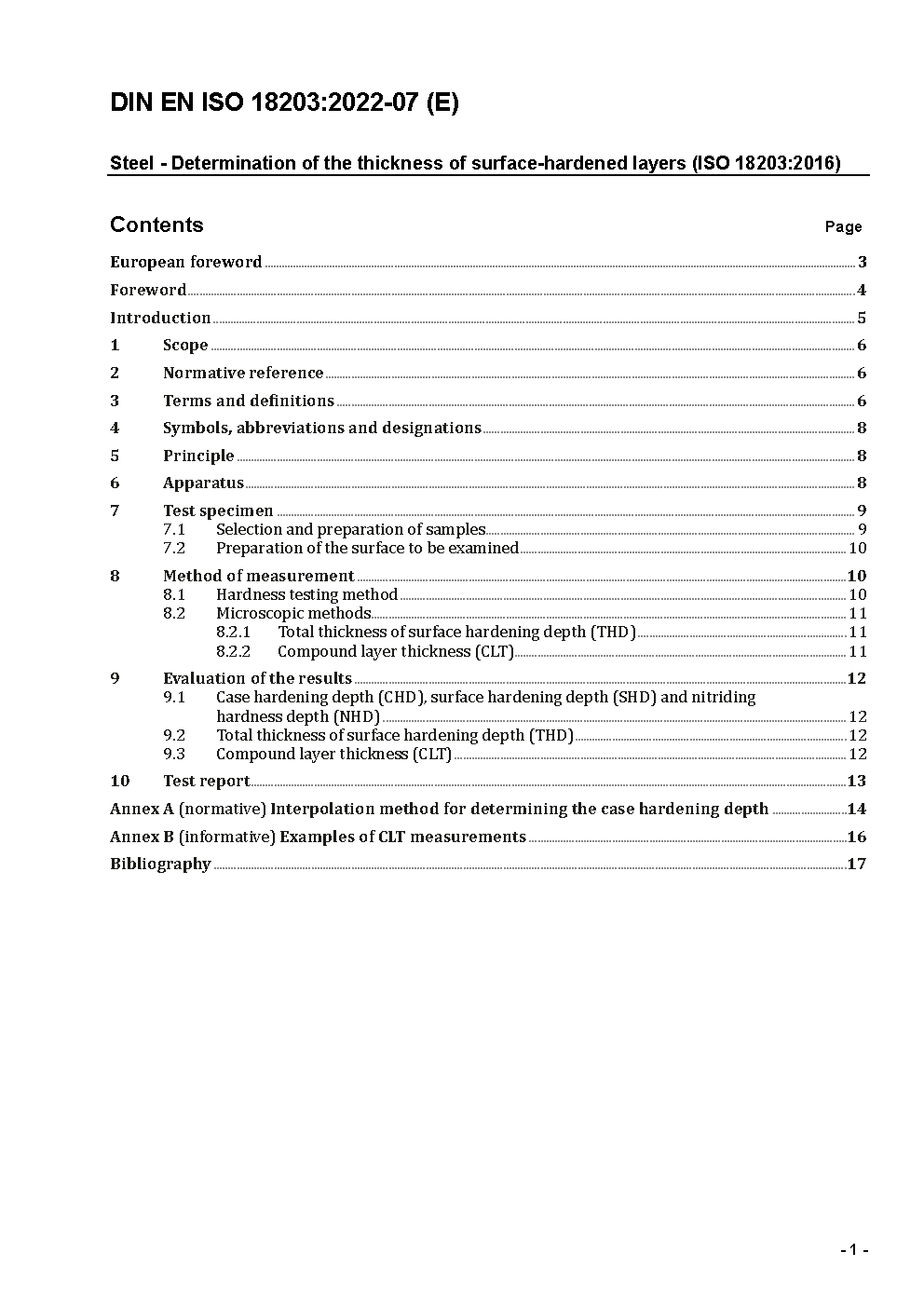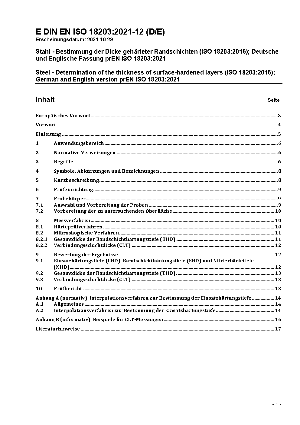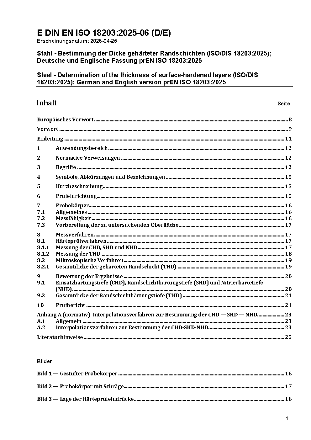 Steel - Determination of the thickness of surface-hardened layers (ISO 18203:2016); German and English version prEN ISO 18203:2021
