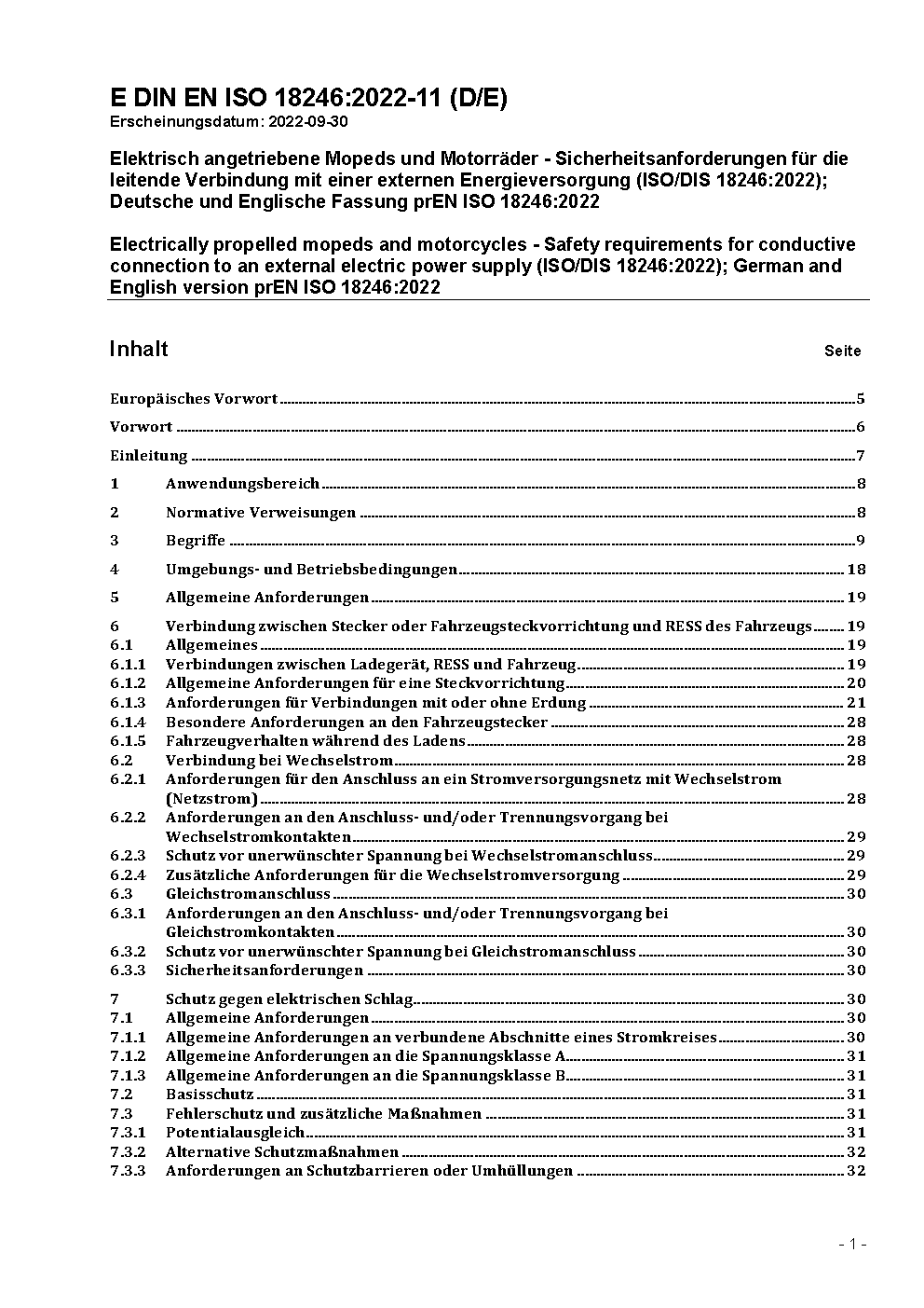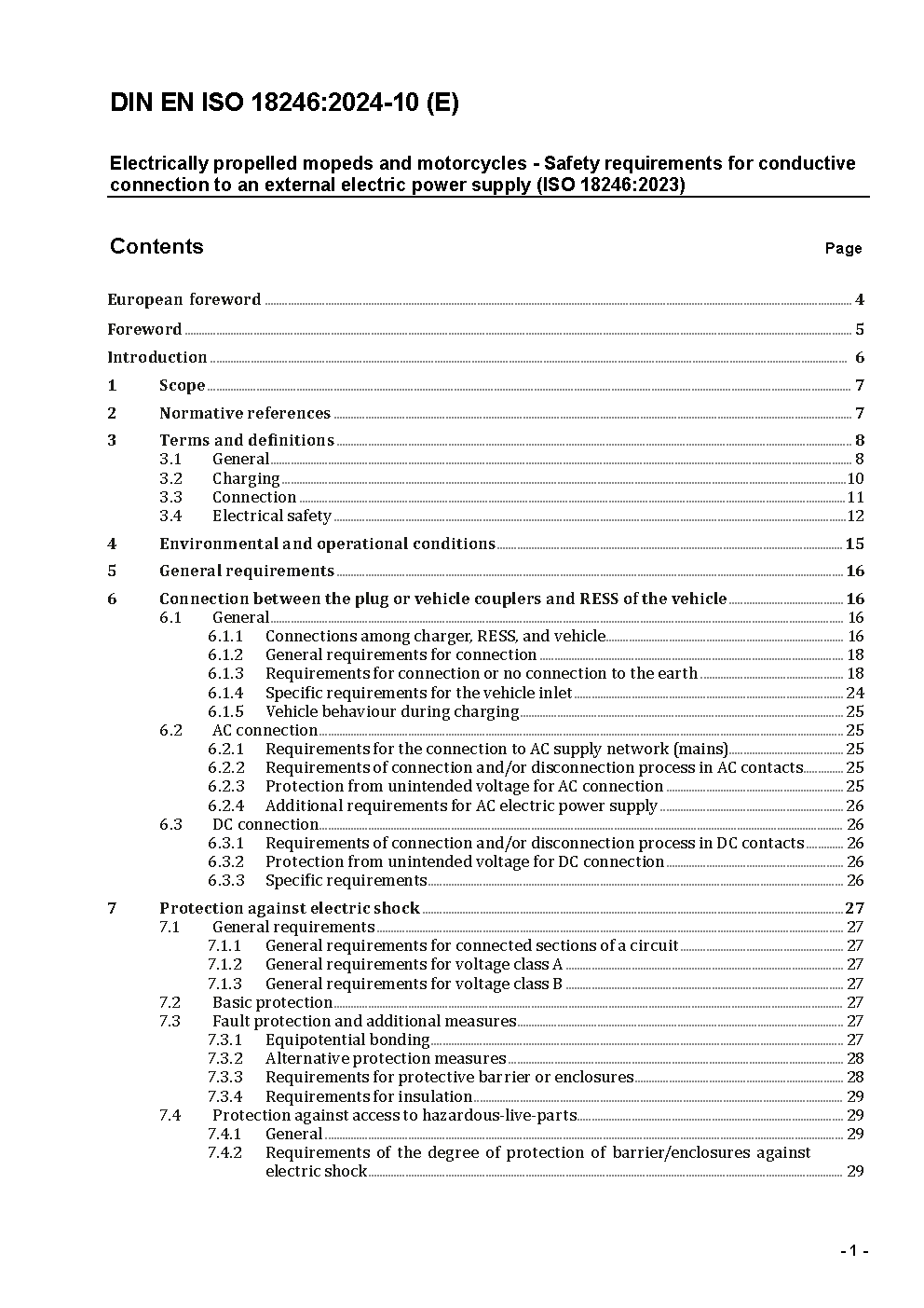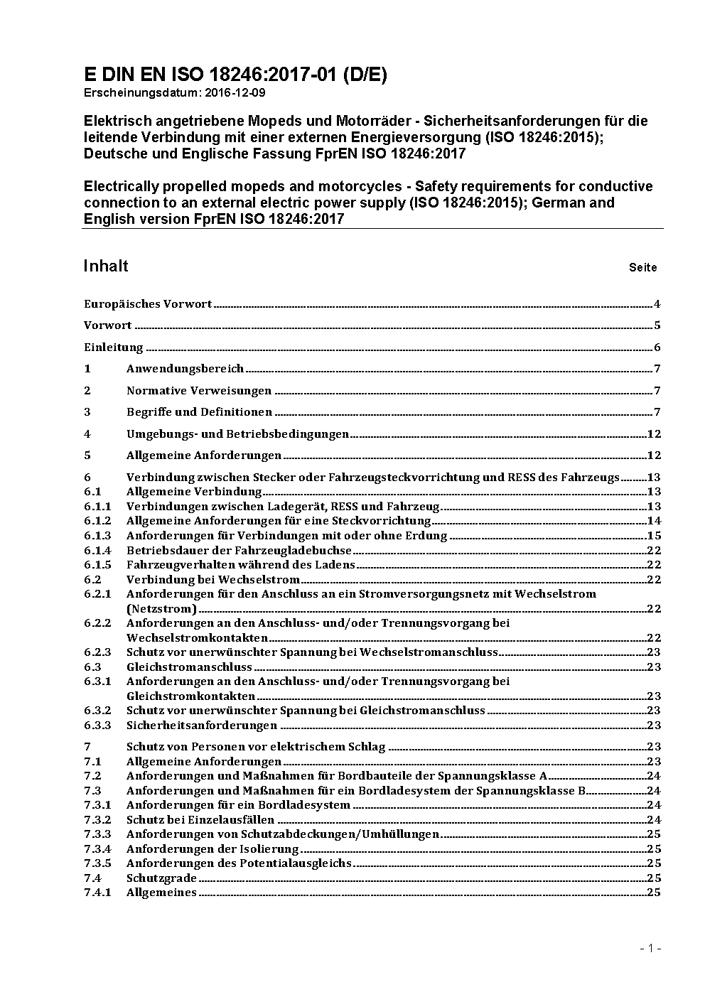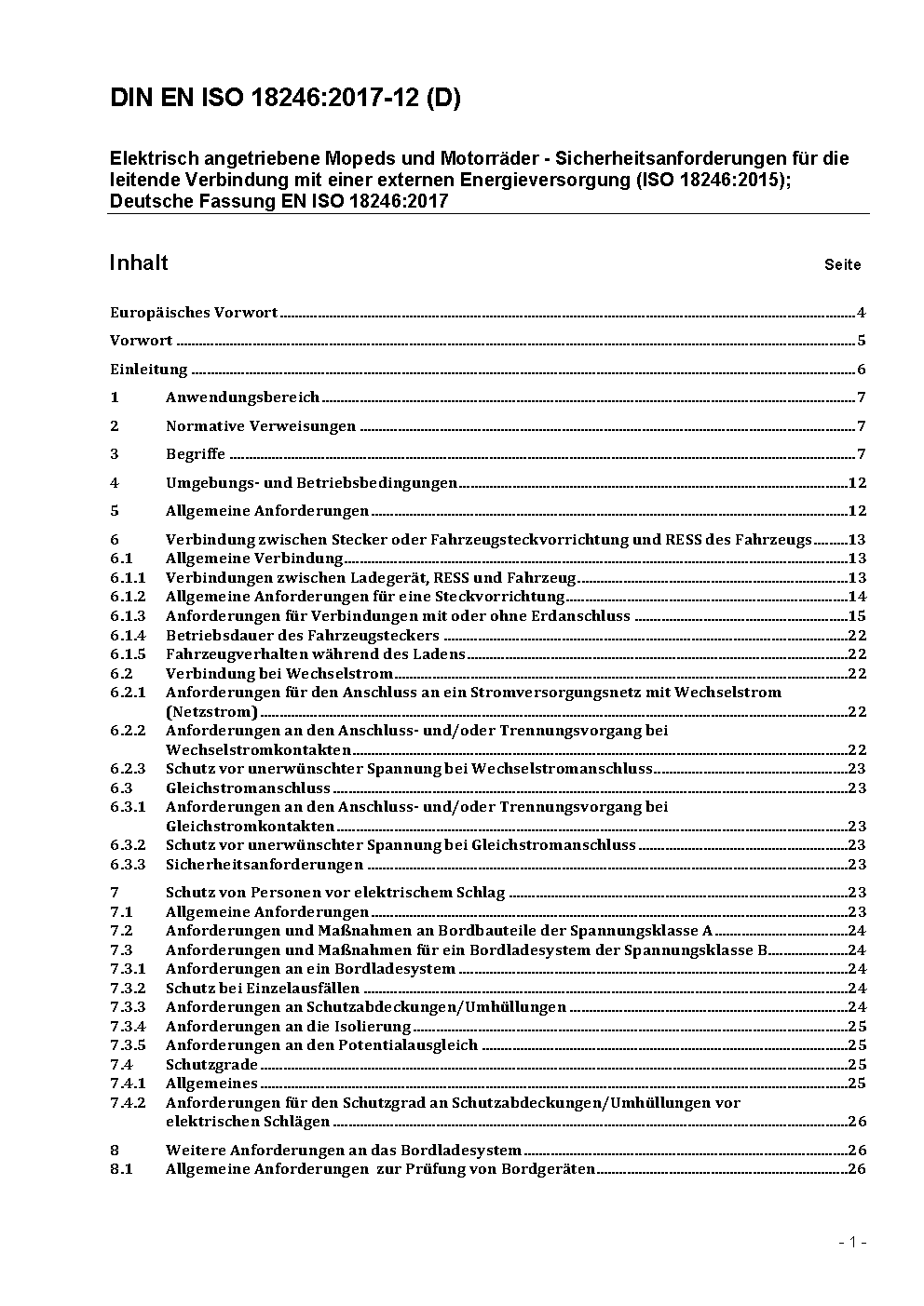 Electrically propelled mopeds and motorcycles - Safety requirements for conductive connection to an external electric power supply (ISO 18246:2015); German and English version FprEN ISO 18246:2017