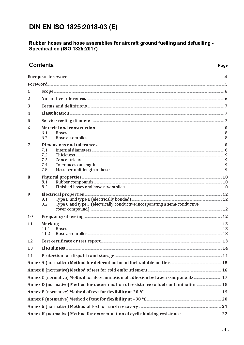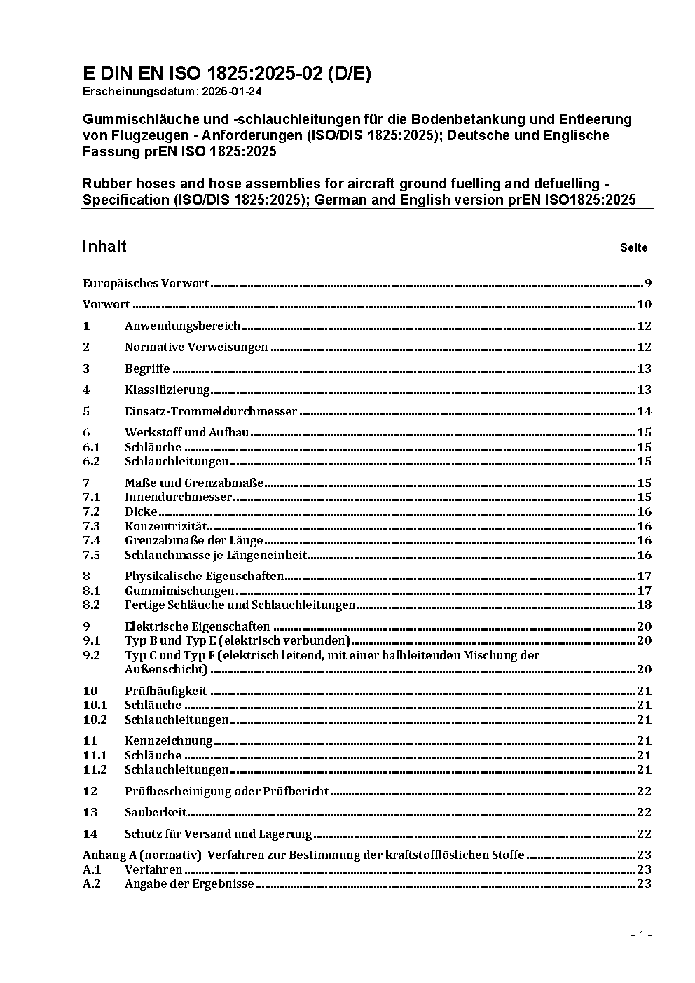 Gummischläuche und -schlauchleitungen für die Bodenbetankung und Entleerung von Flugzeugen - Anforderungen (ISO 1825:2017); Deutsche Fassung EN ISO 1825:2017