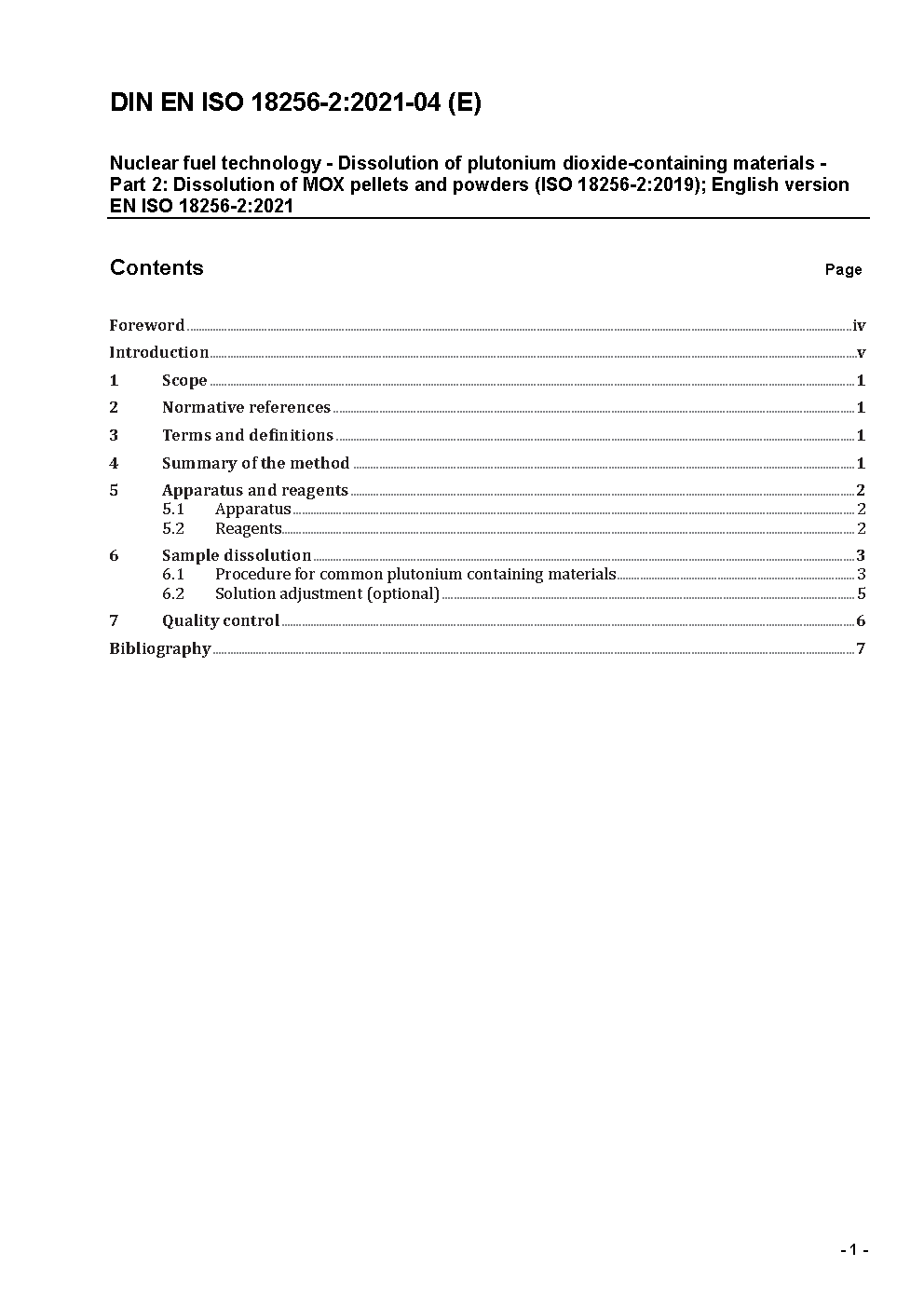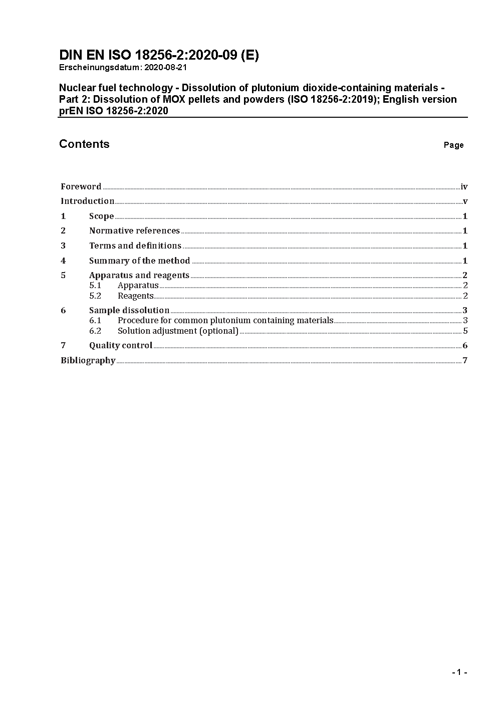Kernbrennstofftechnologie - Lösung von plutoniumdioxidhaltigen Werkstoffen - Teil 2: Lösung von MOX-Pellets und MOX-Pulvern (ISO 18256-2:2019); Englische Fassung prEN ISO 18256-2:2020