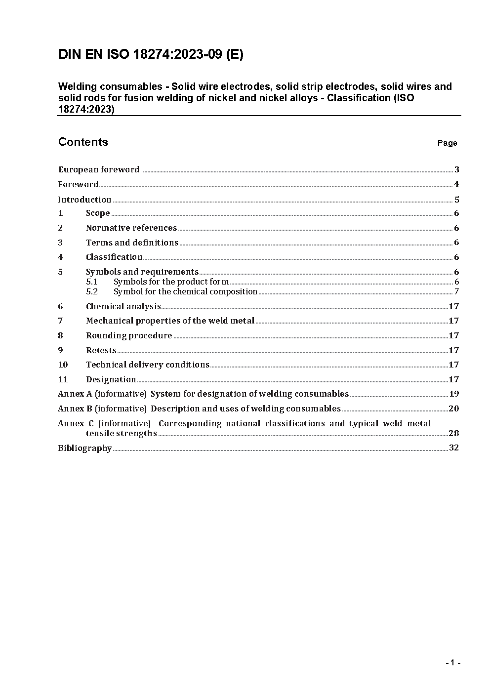 Welding consumables - Solid wire electrodes, solid strip electrodes, solid wires and solid rods for fusion welding of nickel and nickel alloys - Classification (ISO 18274:2023); German version EN ISO 18274:2023
