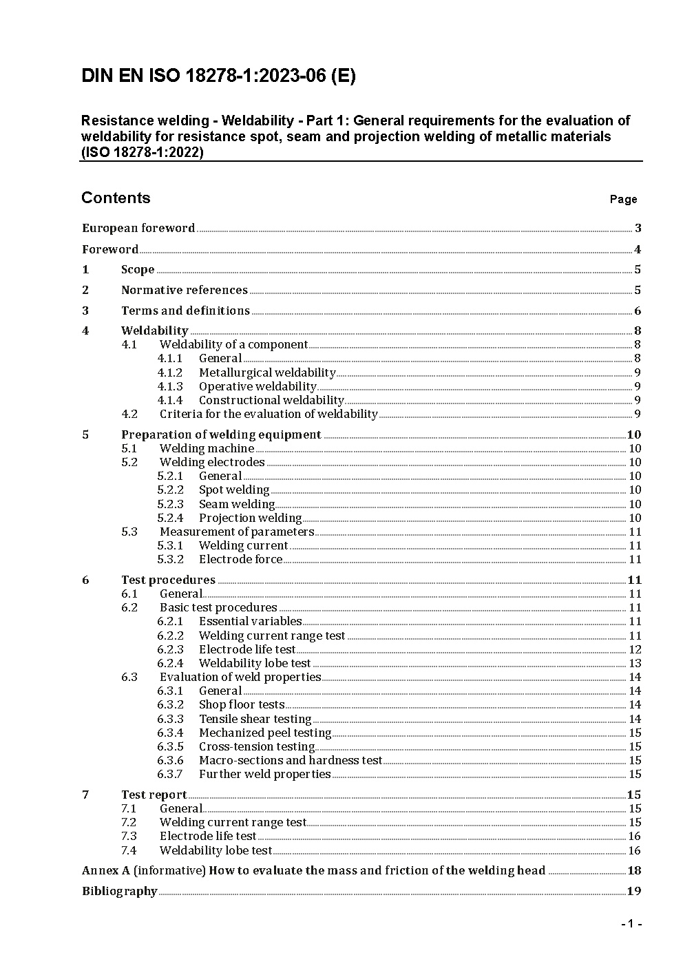 Resistance welding - Weldability - Part 1: General requirements for the evaluation of weldability for resistance spot, seam and projection welding of metallic materials (ISO 18278-1:2022); German version EN ISO 18278-1:2022
