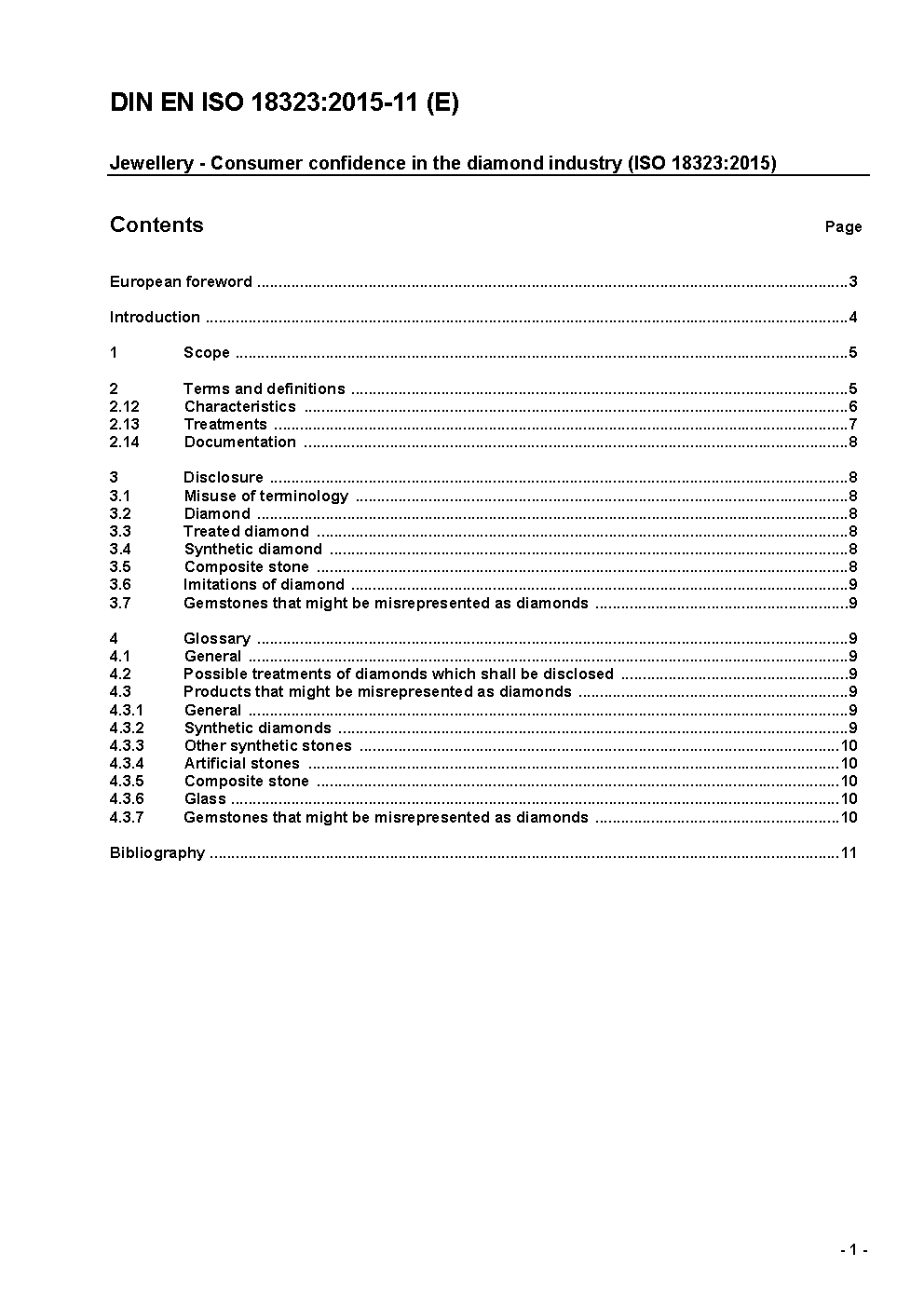 Jewellery - Consumer confidence in the diamond industry (ISO 18323:2015); German version EN ISO 18323:2015