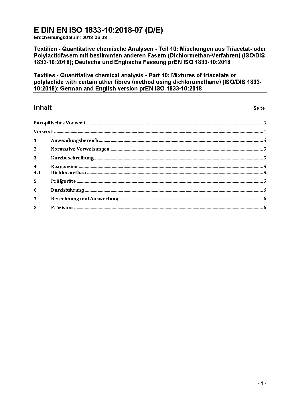 Textilien - Quantitative chemische Analysen - Teil 10: Mischungen aus Triacetat- oder Polylactidfasern und bestimmten anderen Fasern (Dichlormethan-Verfahren) (ISO 1833-10:2006); Deutsche Fassung EN ISO 1833-10:2010