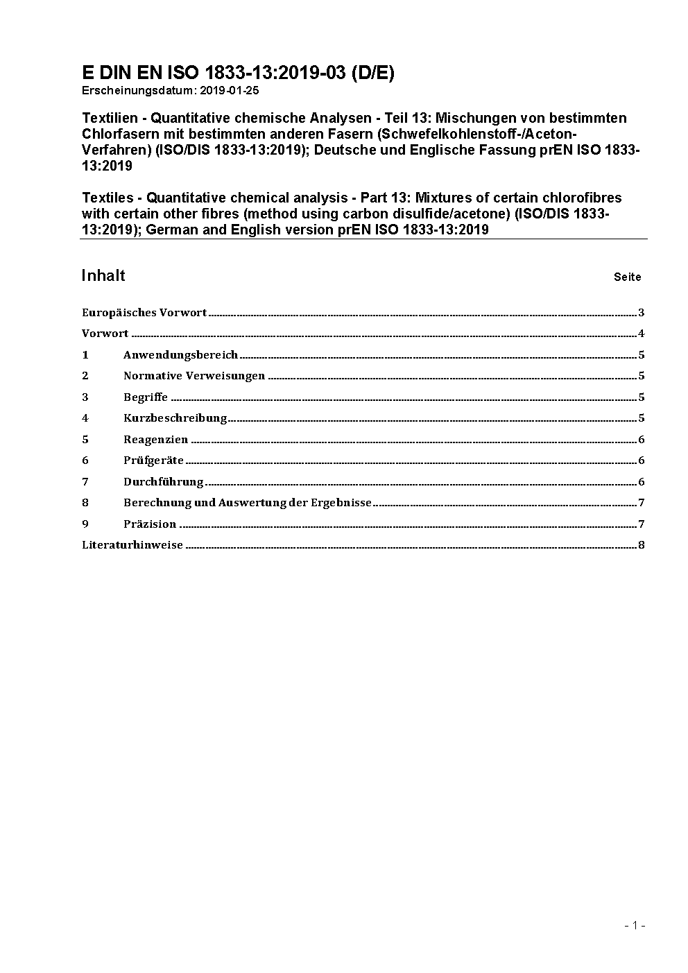 Textilien - Quantitative chemische Analysen - Teil 13: Mischungen aus bestimmten Chlorfasern und bestimmten anderen Fasern (Schwefelkohlenstoff-/Aceton-Verfahren) (ISO 1833-13:2006); Deutsche Fassung EN ISO 1833-13:2010