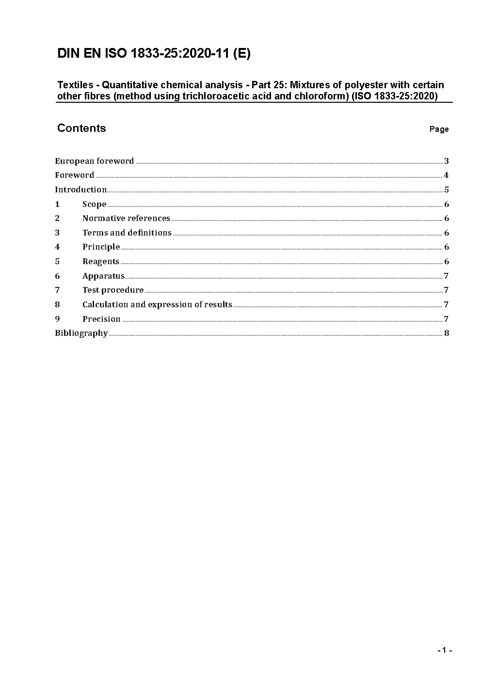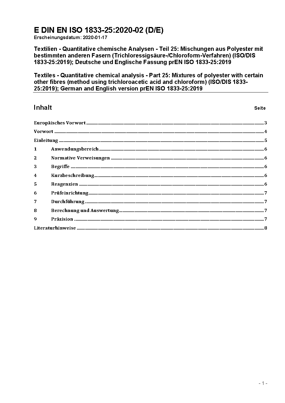 Textilien - Quantitative chemische Analysen - Teil 25: Mischungen aus Polyester und einigen anderen Fasern (Trichloressigsäure-/Chloroform-Verfahren) (ISO 1833-25:2013); Deutsche Fassung EN ISO 1833-25:2013