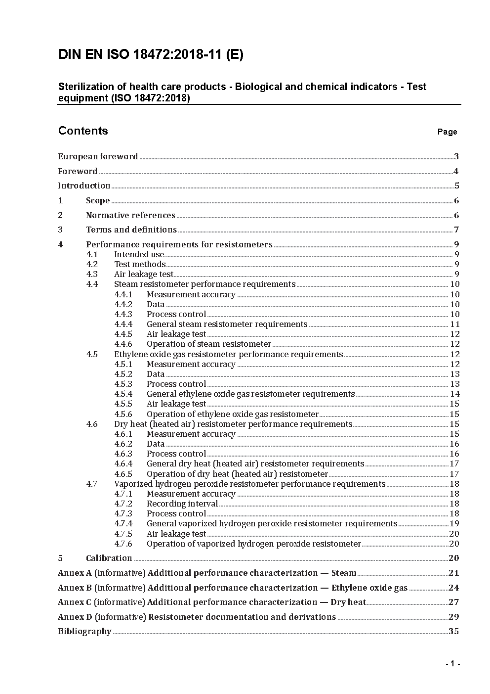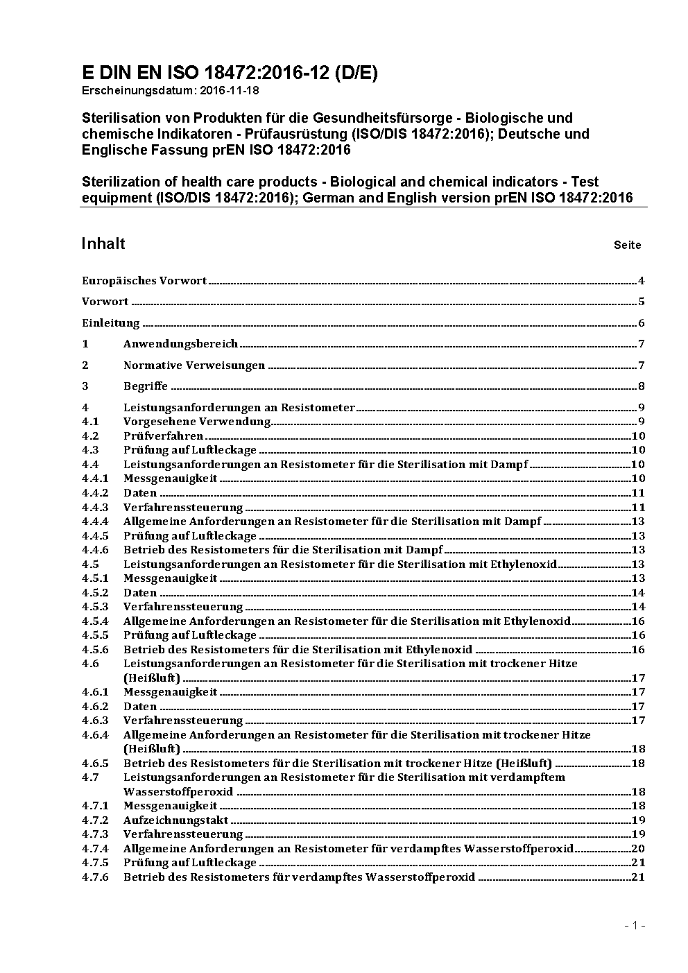 Sterilization of health care products - Biological and chemical indicators - Test equipment (ISO 18472:2006); German version EN ISO 18472:2006