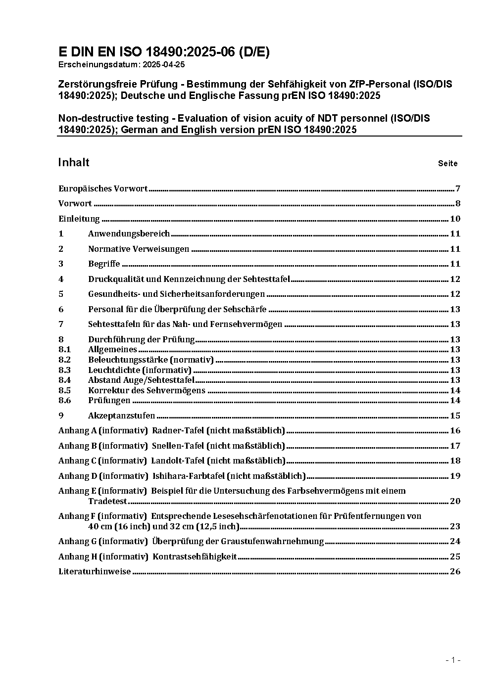Zerstörungsfreie Prüfung - Bestimmung der Sehfähigkeit von ZfP-Personal (ISO/DIS 18490:2013); Deutsche Fassung prEN ISO 18490:2013