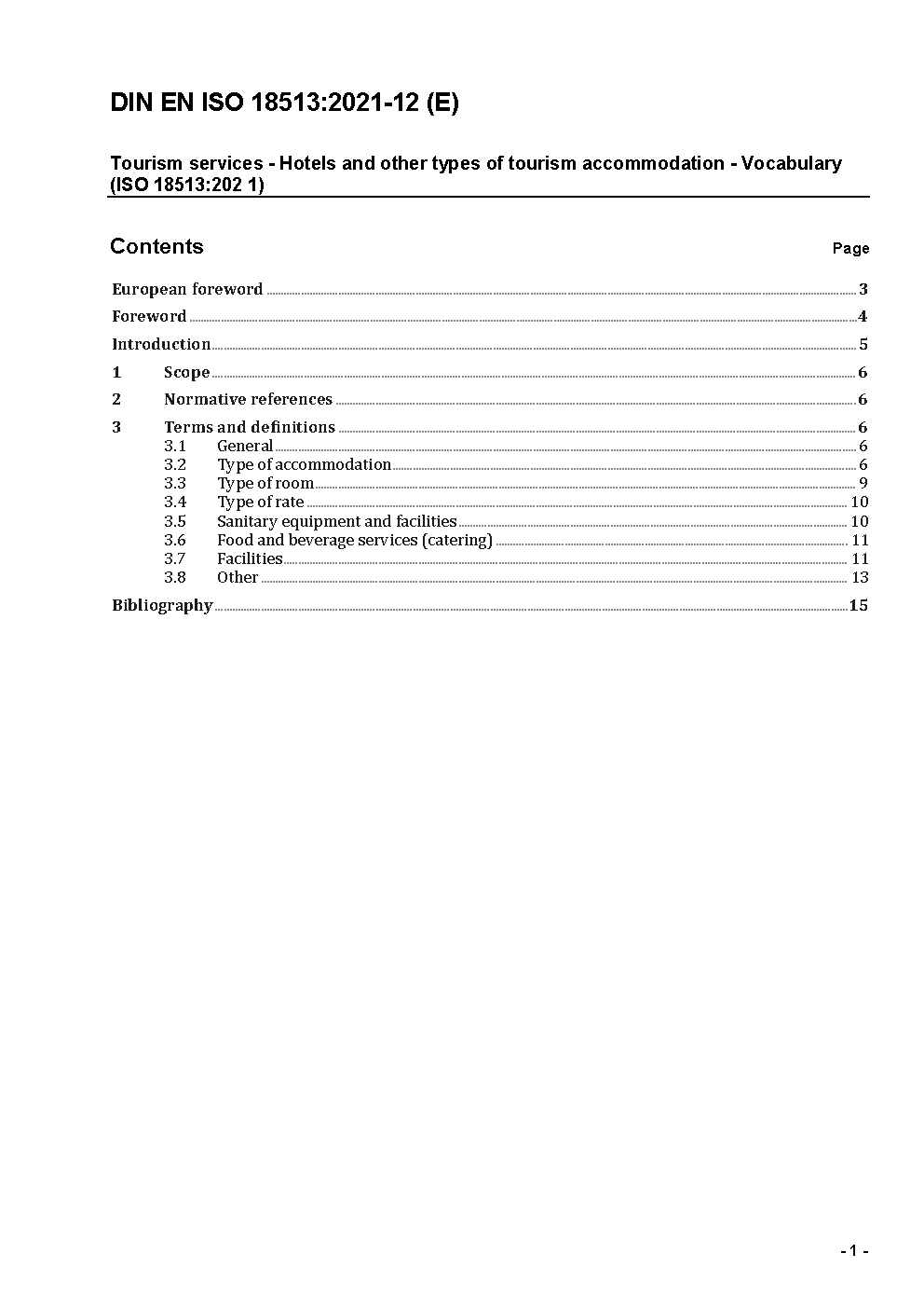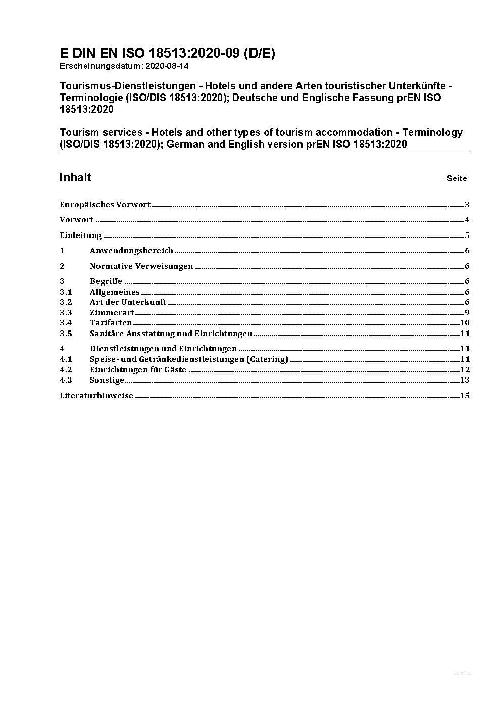 Tourism services - Hotels and other types of tourism accommodation - Terminology (ISO/DIS 18513:2020); German and English version prEN ISO 18513:2020