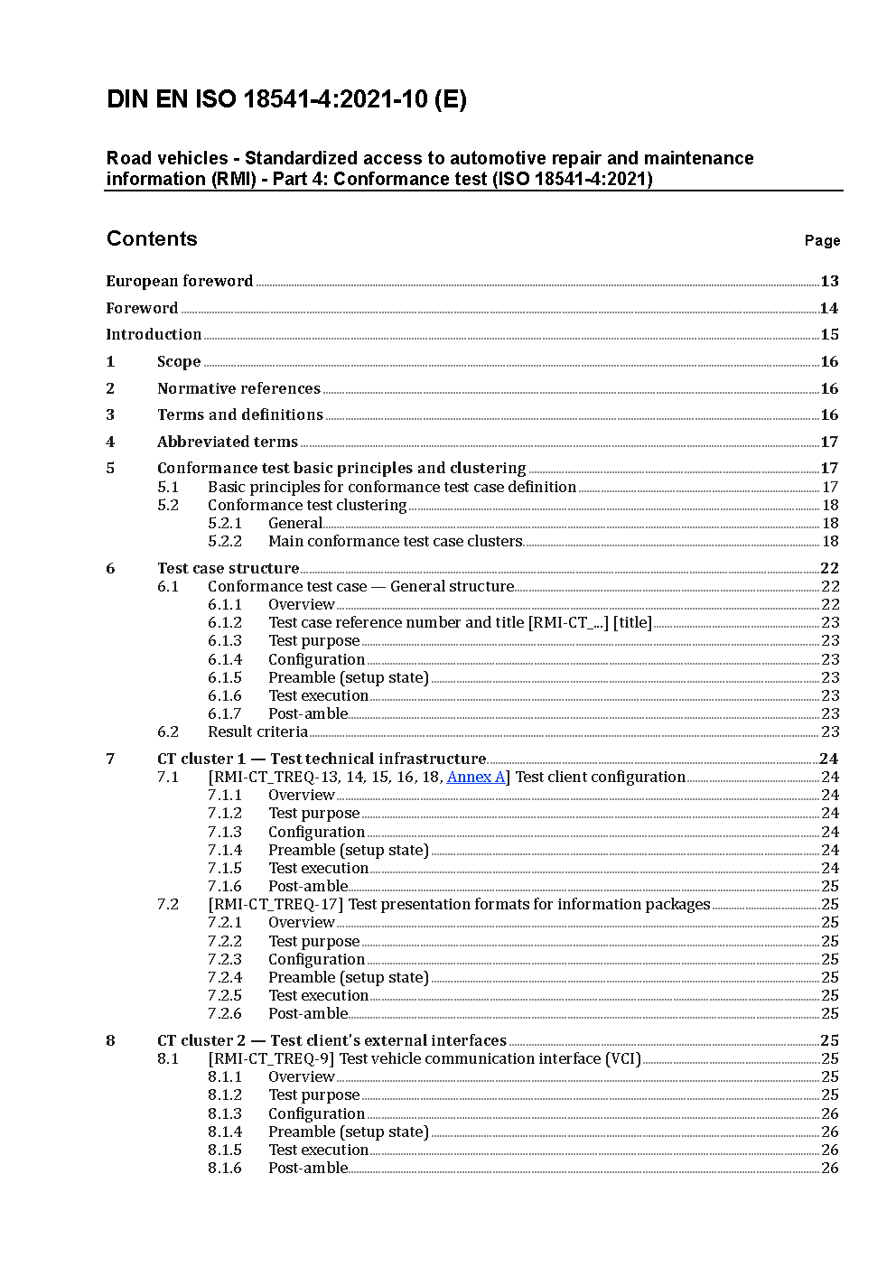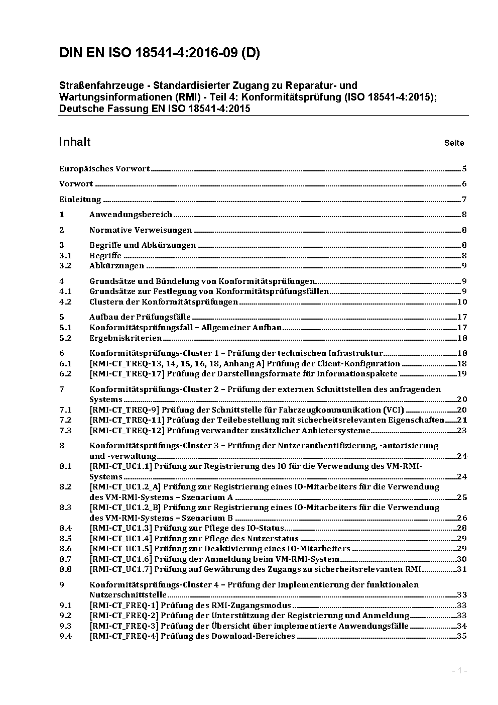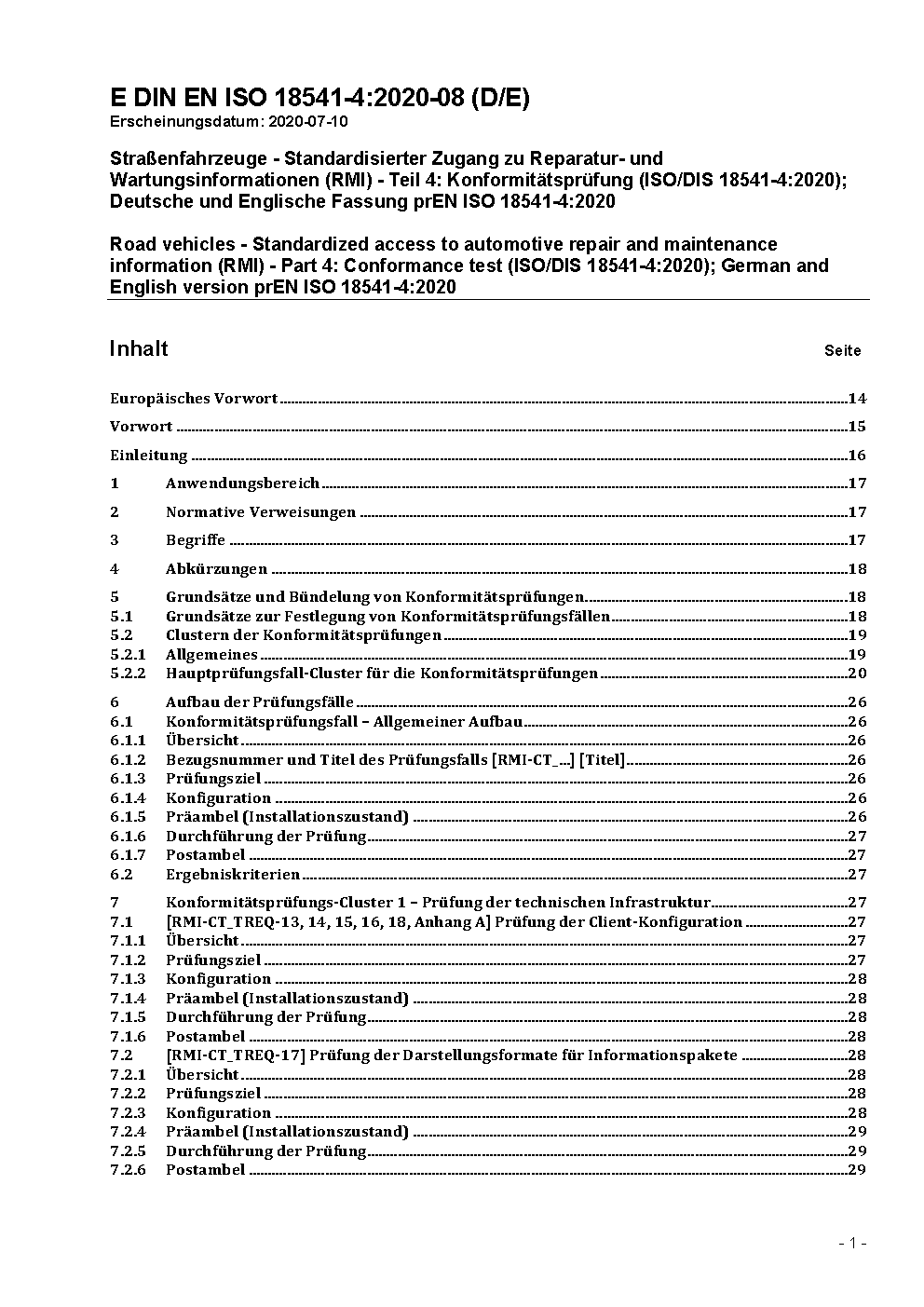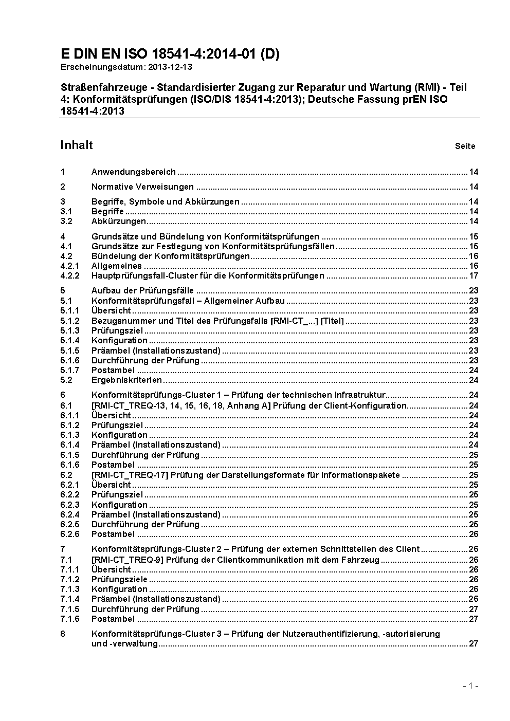 Road vehicles - Standardized access to automotive repair and maintenance information (RMI) - Part 4: Conformance test (ISO/DIS 18541-4:2013); German version prEN ISO 18541-4:2013