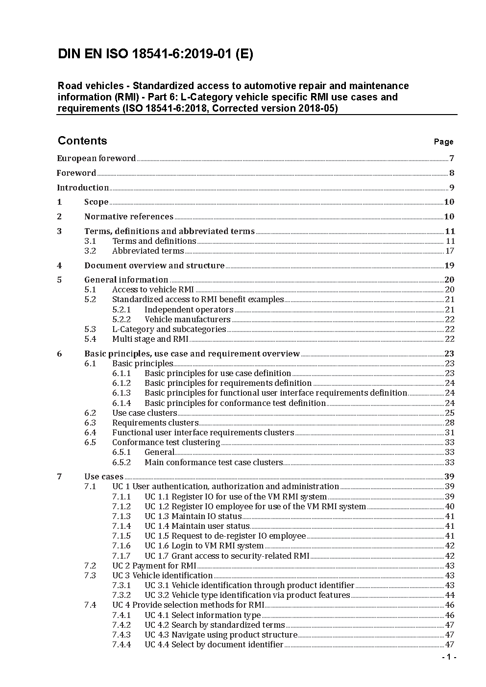 Road vehicles - Standardized access to automotive repair and maintenance information (RMI) - Part 6: L-Category vehicle specific RMI use cases and requirements (ISO 18541-6:2018, Corrected version 2018-05); German version EN ISO 18541-6:2018