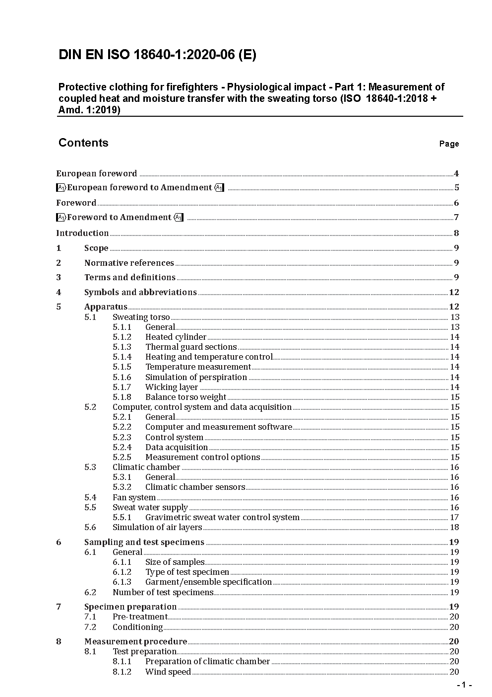 Protective clothing for fire-fighters - Physiological impact - Part 1: Measurement of coupled heat and mass transfer with the sweating TORSO (ISO/DIS 18640-1:2016); German and English version prEN ISO 18640-1:2016