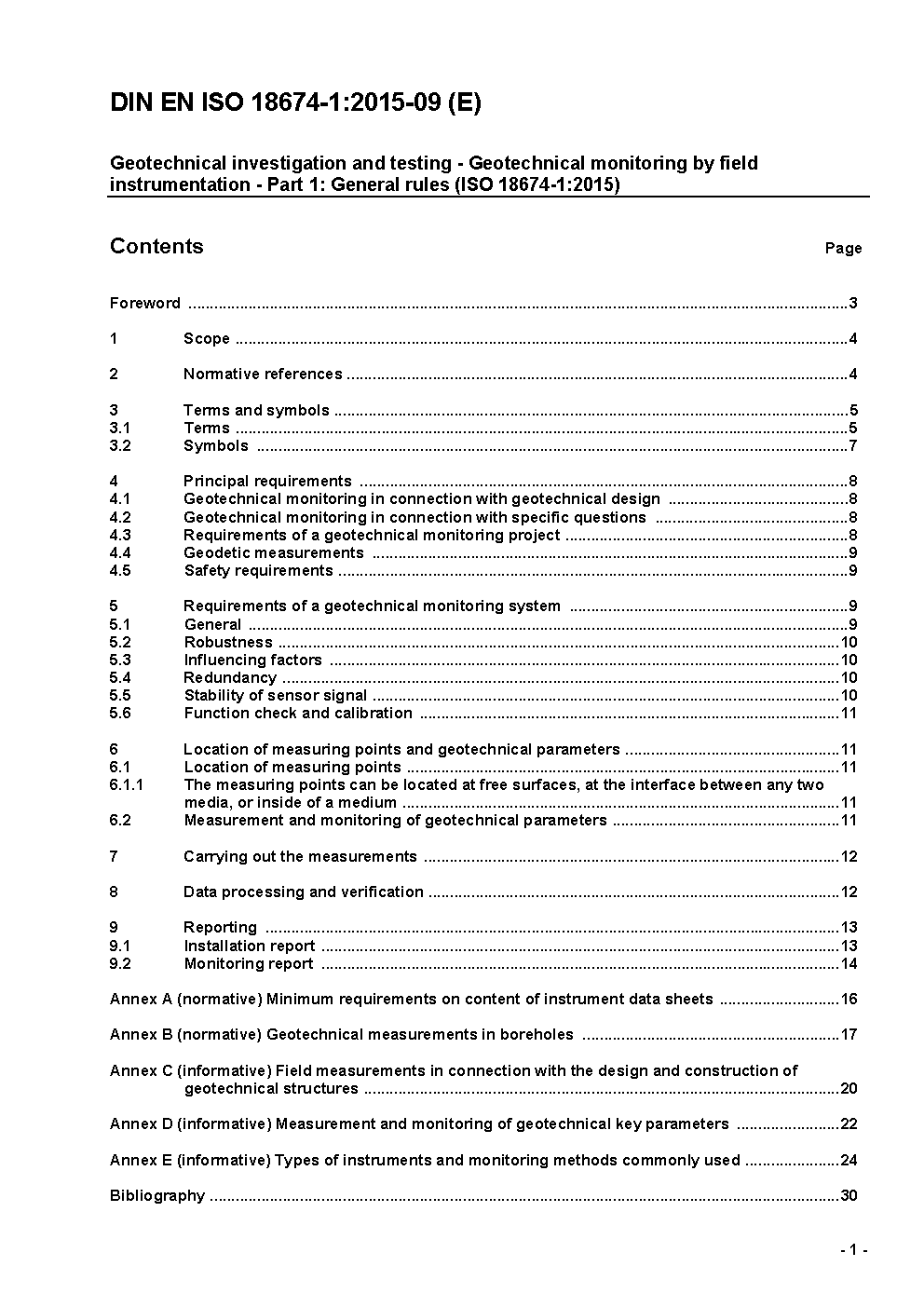 Geotechnical investigation and testing - Geotechnical monitoring by field instrumentation - Part 1: General rules (ISO 18674-1:2015); German version EN ISO 18674-1:2015
