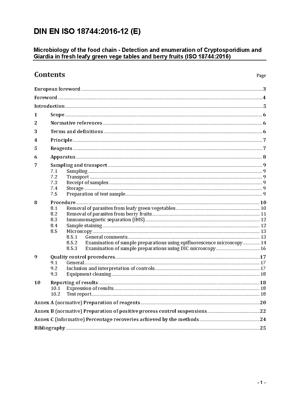 Microbiology of food and animal feed - Detection and enumeration of Cryptosporidium and Giardia in fresh leafy green vegetables and berry fruits (ISO/DIS 18744:2013); German version prEN ISO 18744:2013