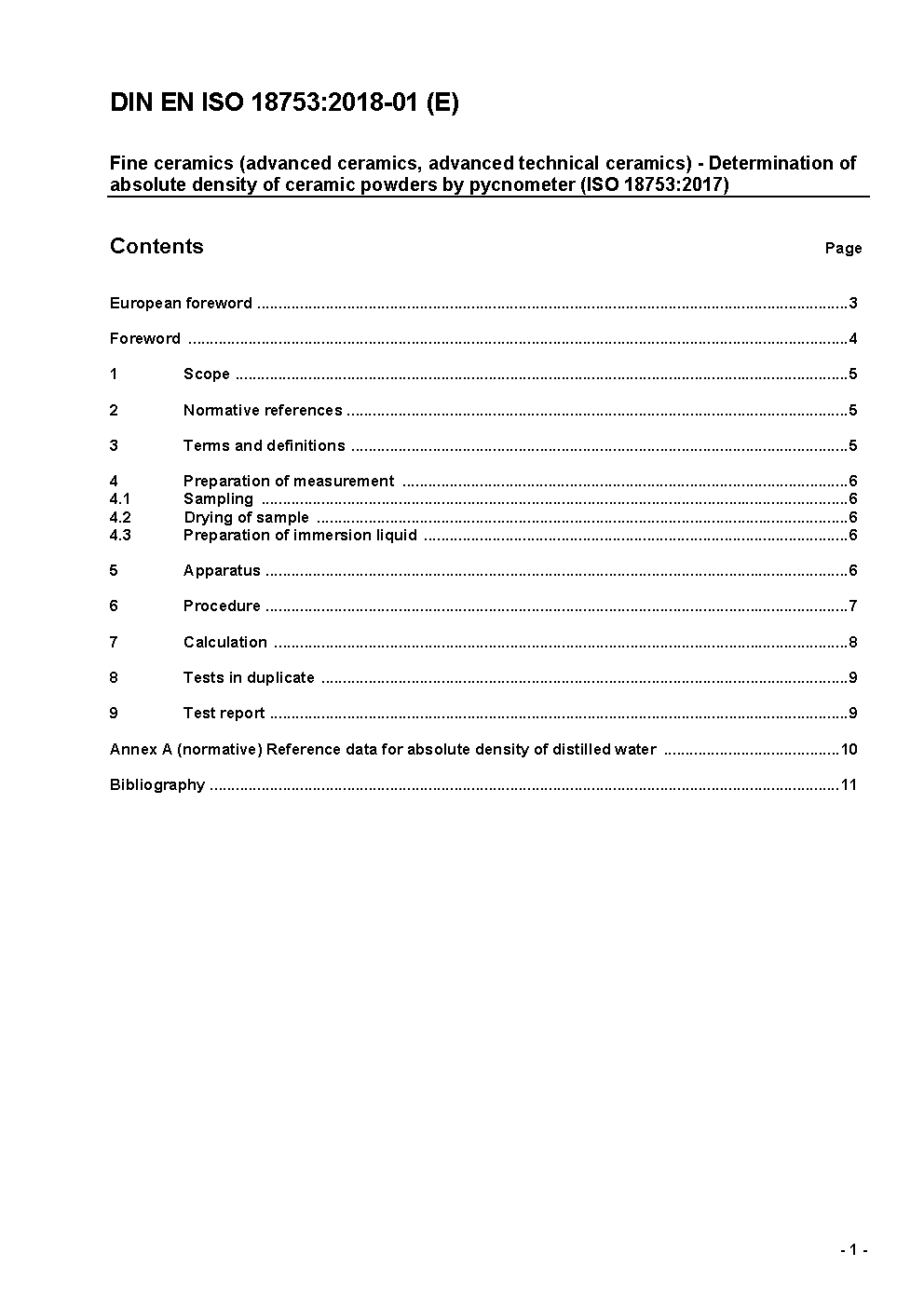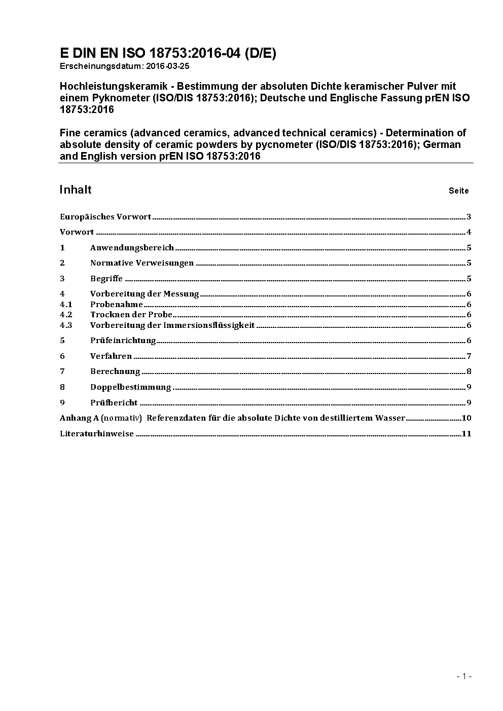 Hochleistungskeramik - Bestimmung der absoluten Dichte keramischer Pulver mit einem Pyknometer (ISO 18753:2017); Deutsche Fassung EN ISO 18753:2017