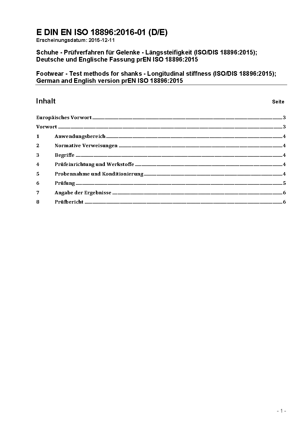 Schuhe - Prüfverfahren für Gelenke - Längssteifigkeit (ISO/DIS 18896:2015); Deutsche und Englische Fassung prEN ISO 18896:2015