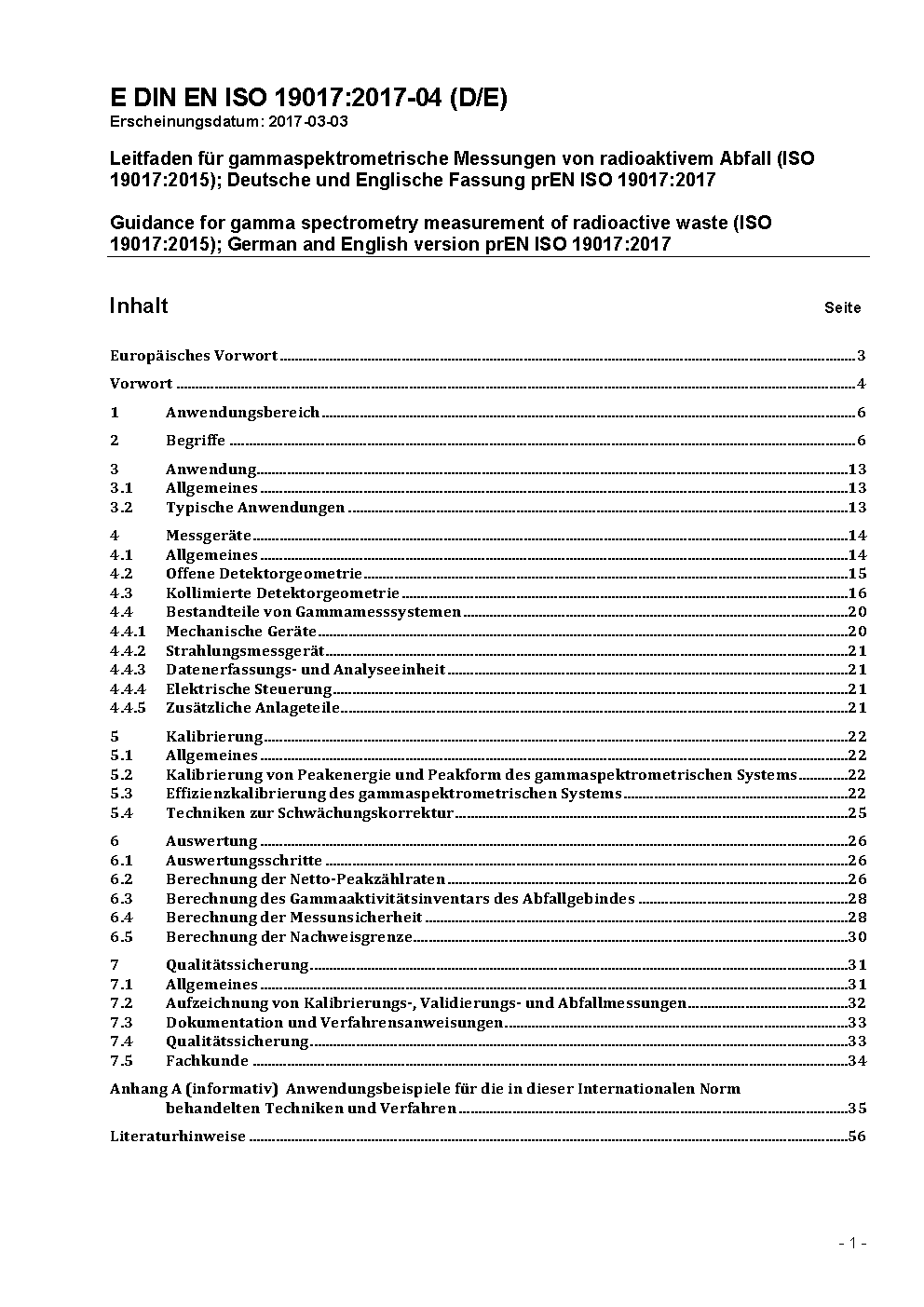 Leitfaden für gammaspektrometrische Messungen von radioaktivem Abfall (ISO 19017:2015); Deutsche Fassung EN ISO 19017:2017