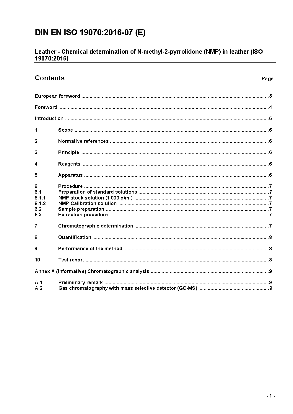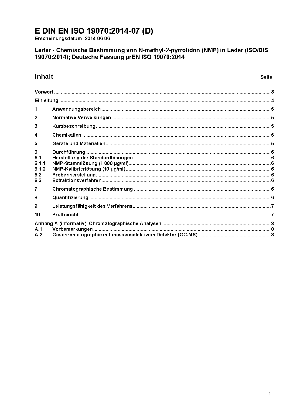 Leder - Chemische Bestimmung von N-methyl-2-pyrrolidon (NMP) in Leder (ISO/DIS 19070:2014); Deutsche Fassung prEN ISO 19070:2014