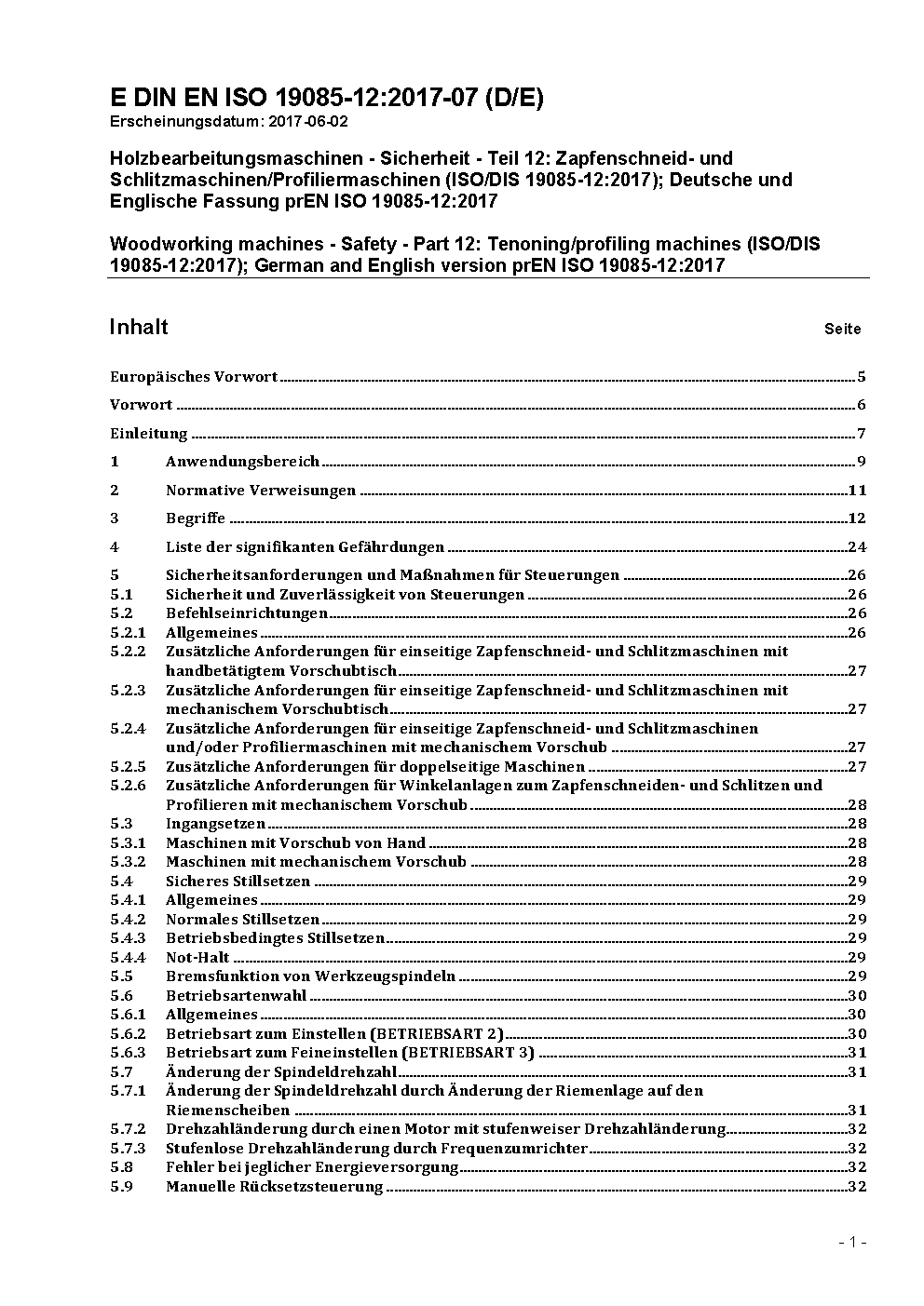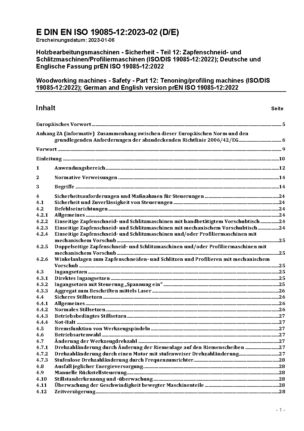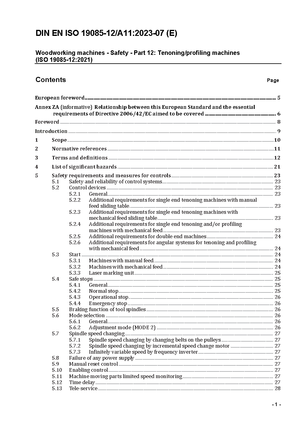 Woodworking machines - Safety - Part 12: Tenoning/profiling machines (ISO 19085-12:2021); German version EN ISO 19085-12:2021/A11:2023