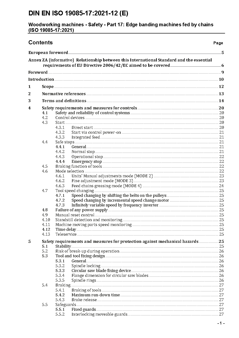 Woodworking machines - Safety - Part 17: Edge banding machines fed by chains (ISO/DIS 19085-17:2019); German and English version prEN ISO 19085-17:2019