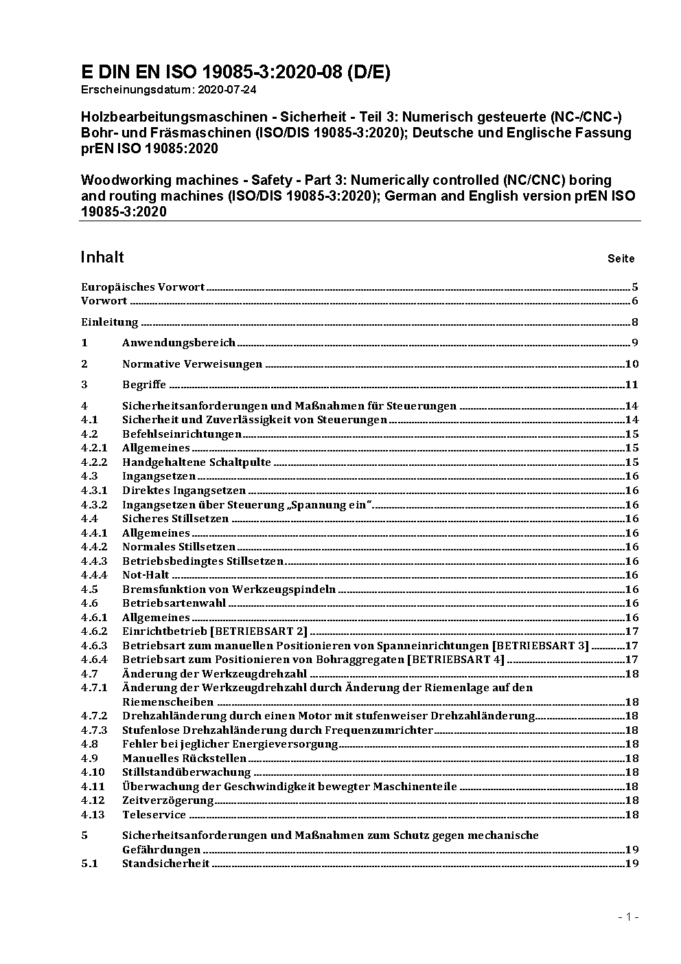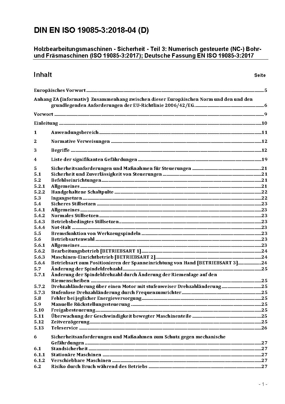 Holzbearbeitungsmaschinen - Sicherheit - Teil 3: Numerisch gesteuerte (NC-) Bohr- und Fräsmaschinen (ISO 19085-3:2017); Deutsche Fassung EN ISO 19085-3:2017