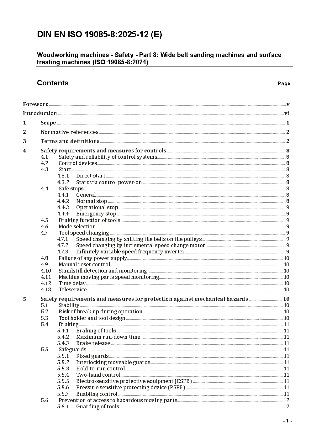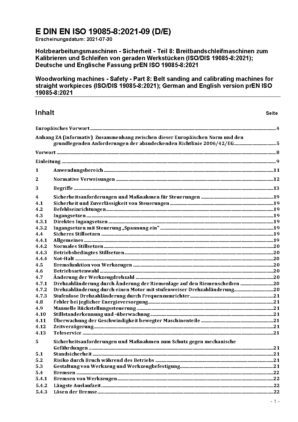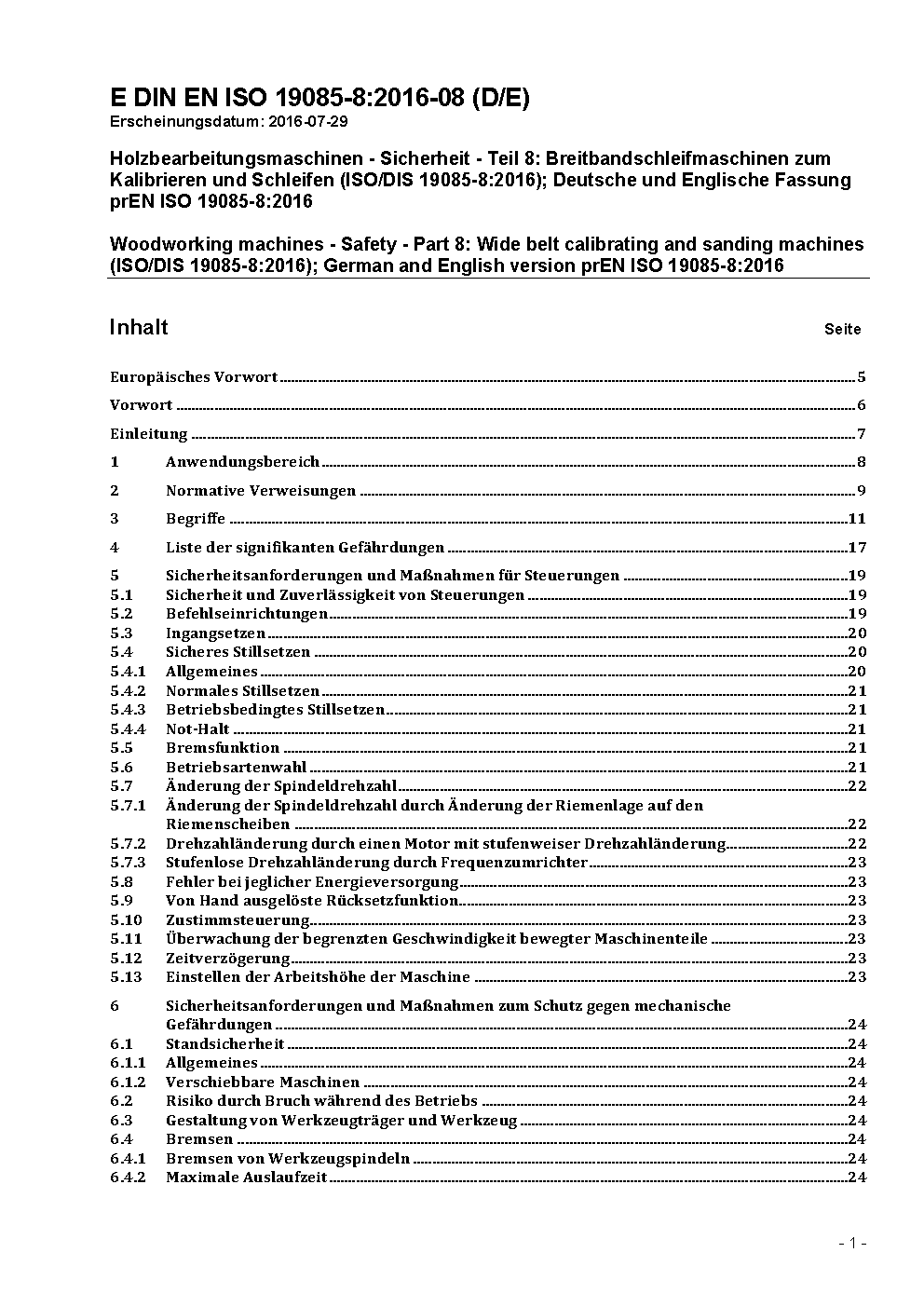 Woodworking machines - Safety - Part 8: Wide belt calibrating and sanding machines (ISO/DIS 19085-8:2016); German and English version prEN ISO 19085-8:2016