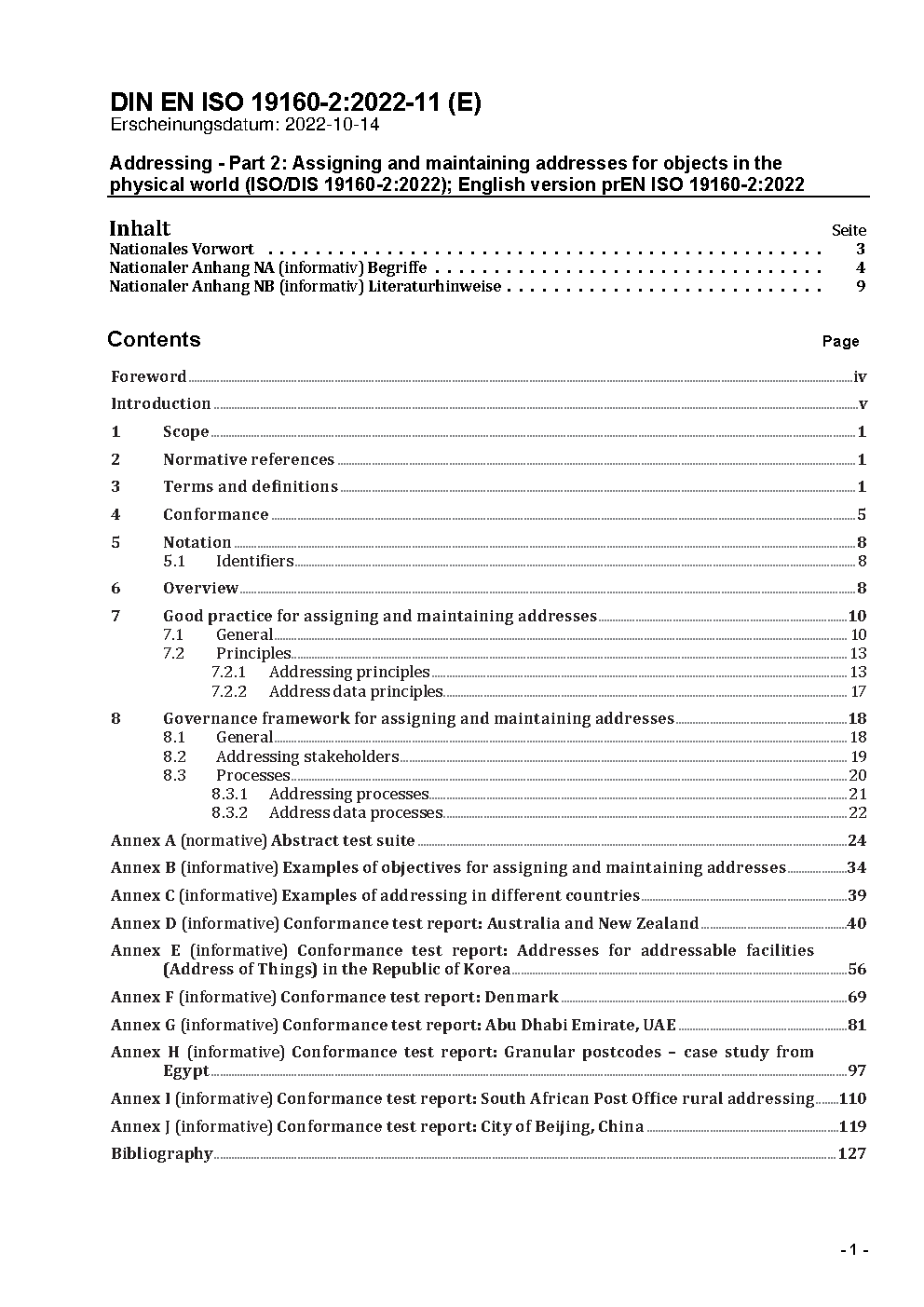 Adressierung - Teil 2: Zuweisen und Verwalten von Adressen für Objekte in der physischen Welt (ISO 19160-2:2023); Englische Fassung EN ISO 19160-2:2023